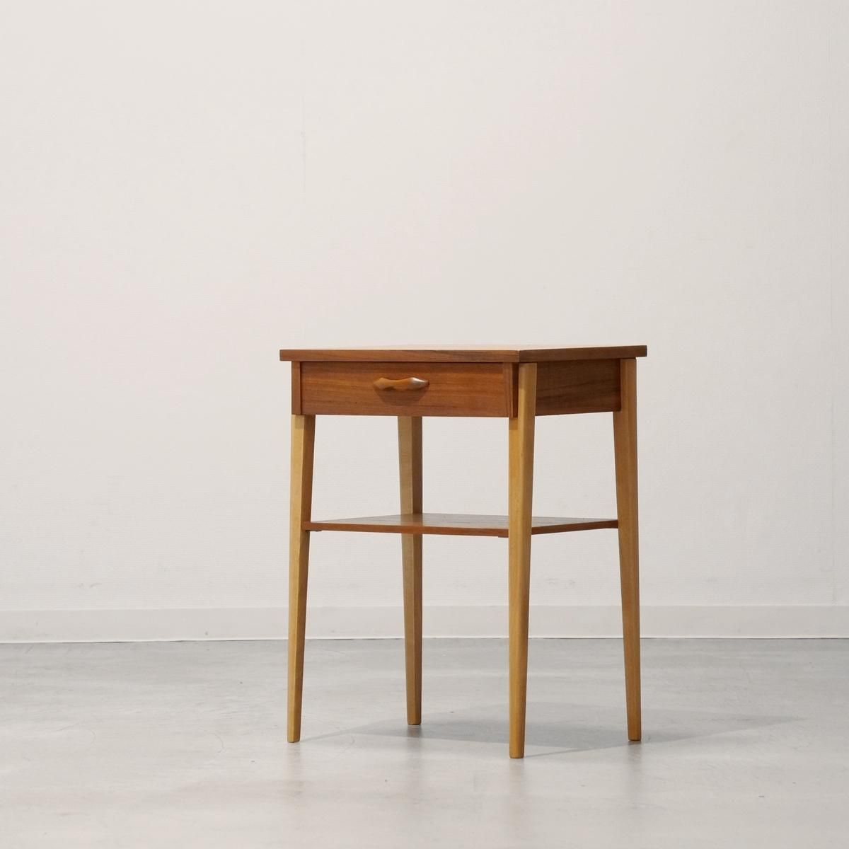 スウェーデンの「AB Bjarni Bjarnum」社製造のチーク&ビーチ材のコンパクトなサイドテーブル。