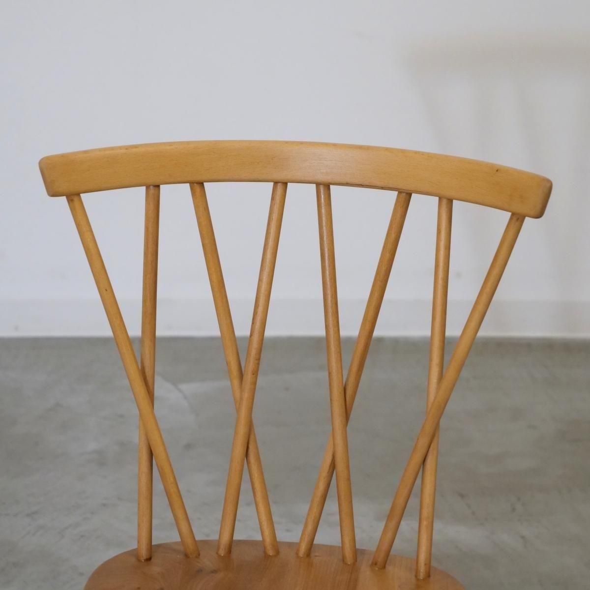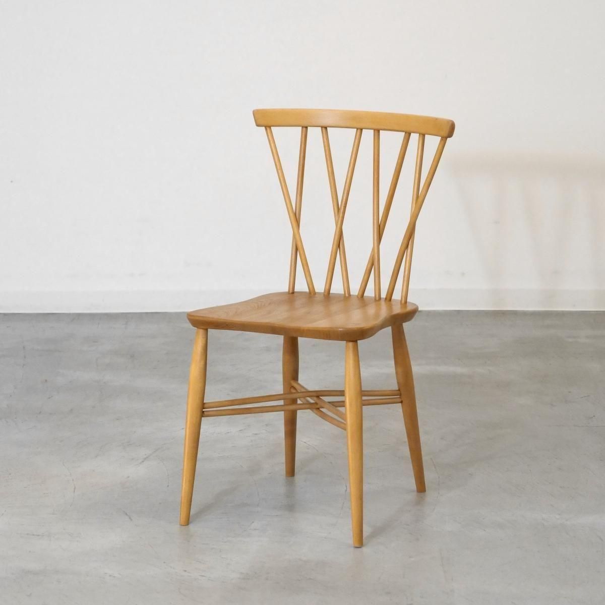イギリスで購入したERCOL社のXバックチェアーです。背中と脚部の貫に見られる交差させた形状が特徴的で、アーコールファンの間でも人気タイプです。スタイリッシュなデザイン性、背もたれのアールが背中を心地よく包み、体になじみやすい作りとなっております。味わい深い木色や艶はビンテージでしか出せない味わいも魅力の一つです。