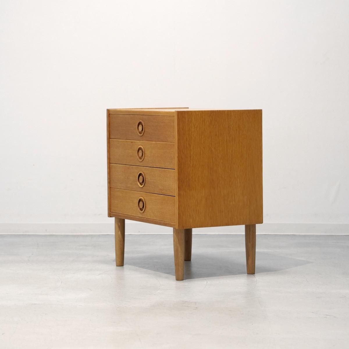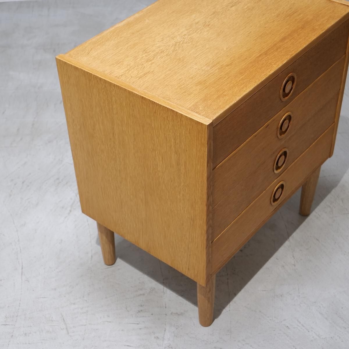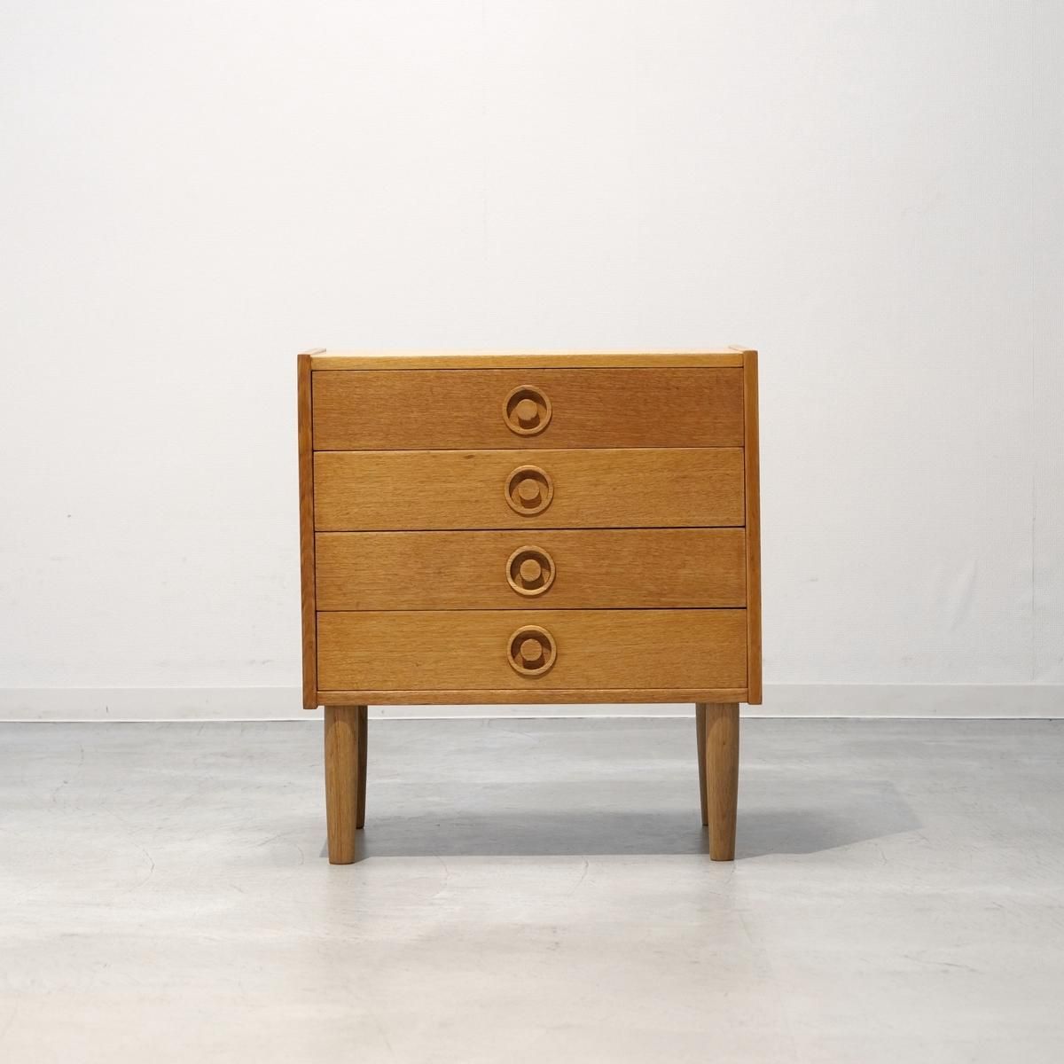 幅60cmとコンパクトなサイズ感が魅力。高さはダイニングテーブルより少し低いぐらいと圧迫感を感じさせず、経年変化したオーク材の色味も素敵で、リビング、寝室にオススメです。
