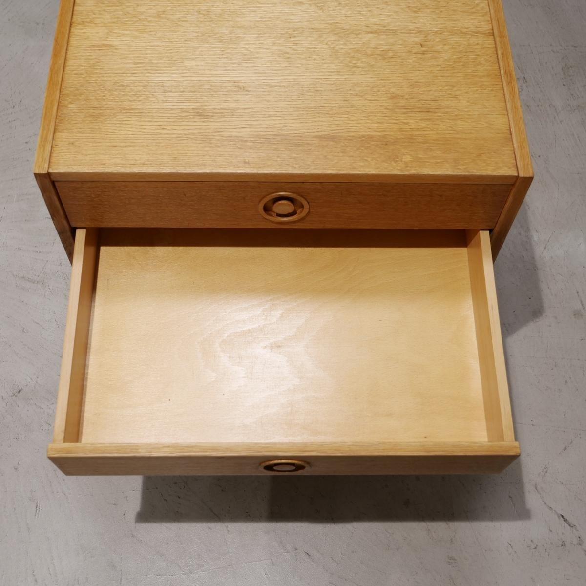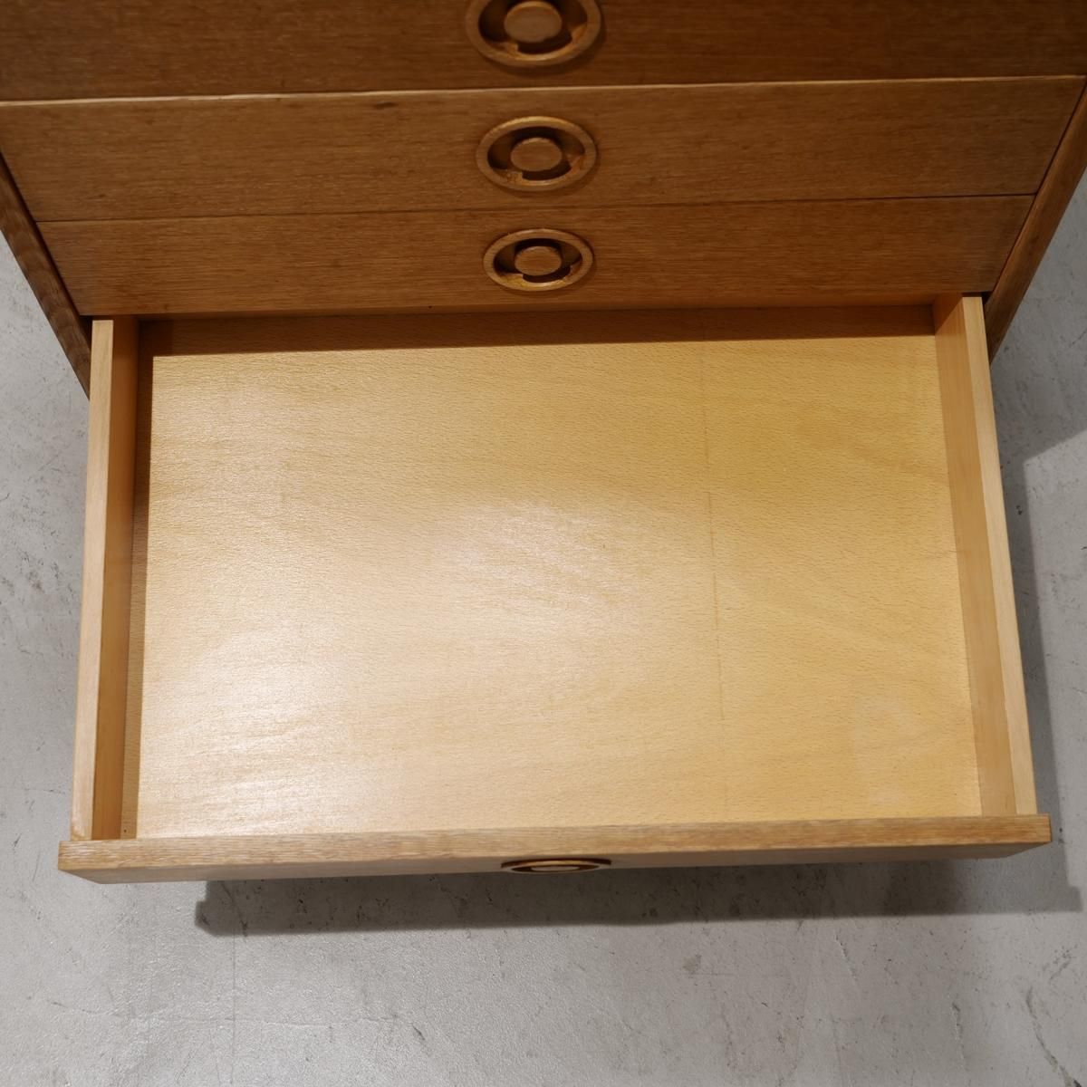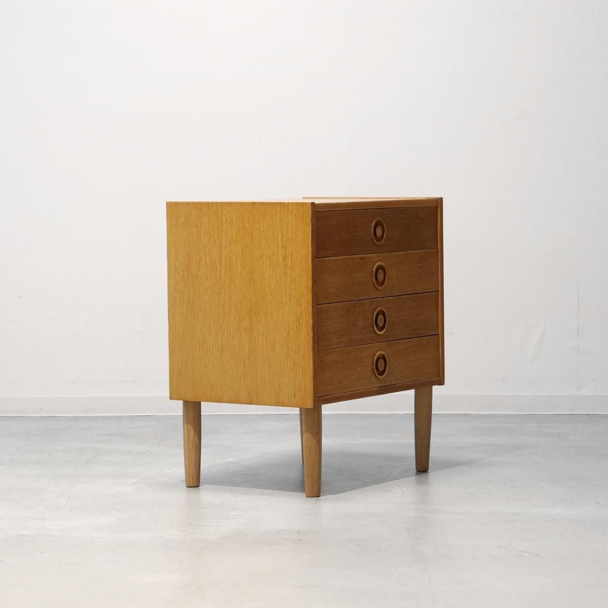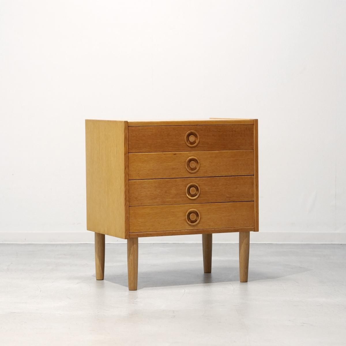幅60cmとコンパクトなサイズ感が魅力。高さはダイニングテーブルより少し低いぐらいと圧迫感を感じさせず、経年変化したオーク材の色味も素敵で、リビング、寝室にオススメです。