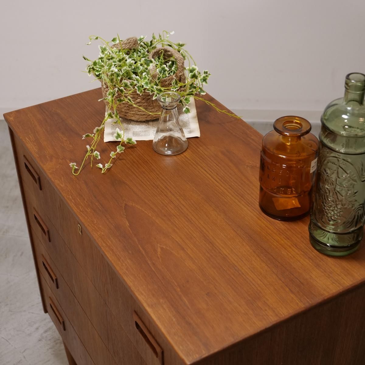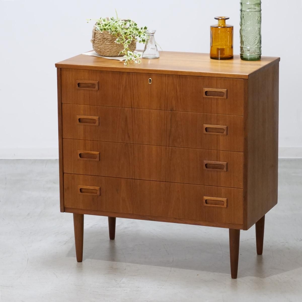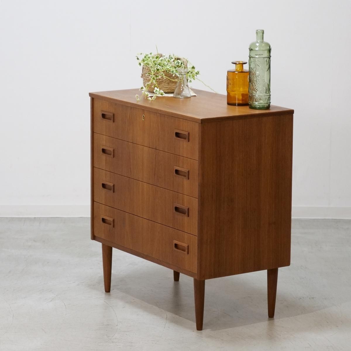 デンマークで買い付けたチーク材の4段チェスト(ビンテージ)。