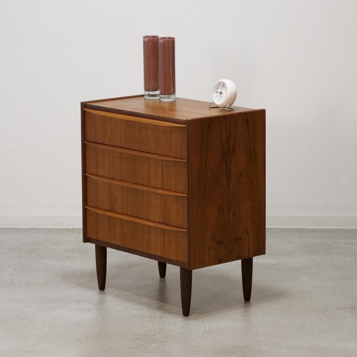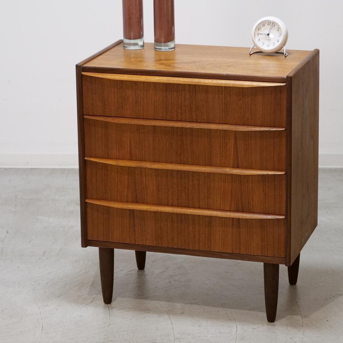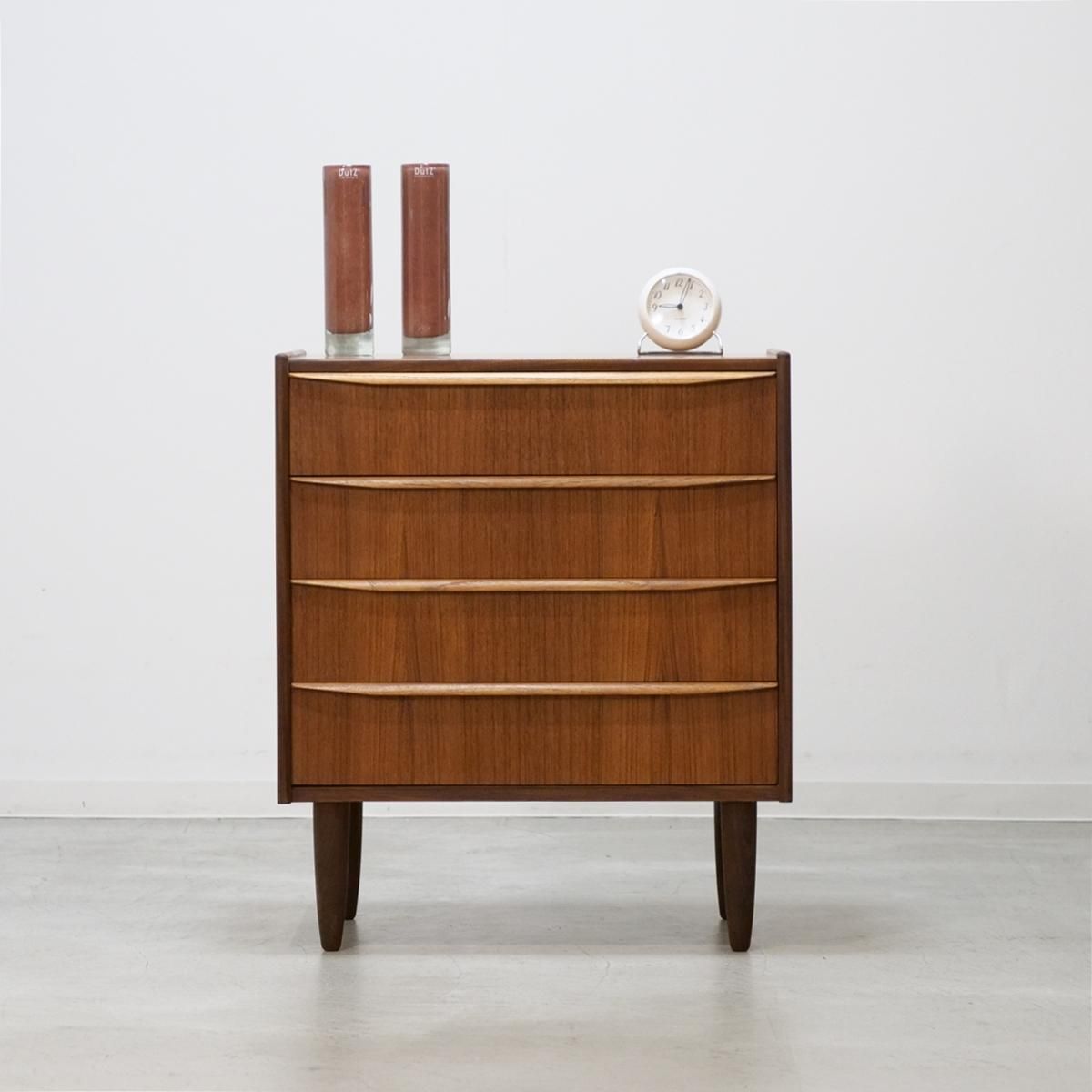 デンマークの「Hanbjerg Mobelfabrik」で製造されたチーク材の4段チェスト(ビンテージ)。
