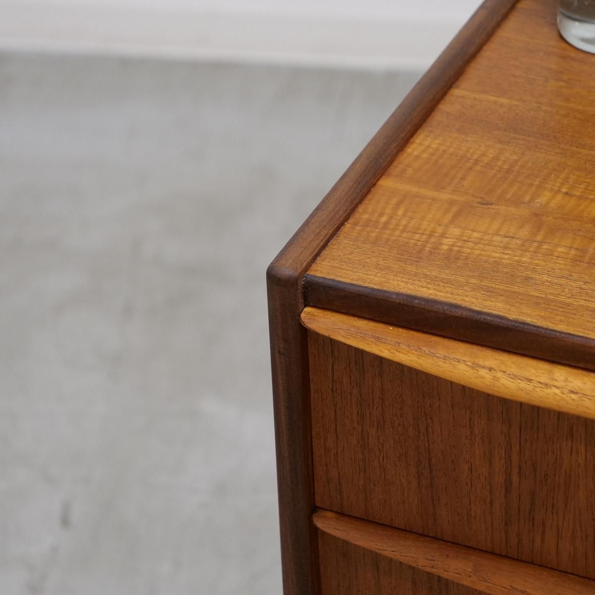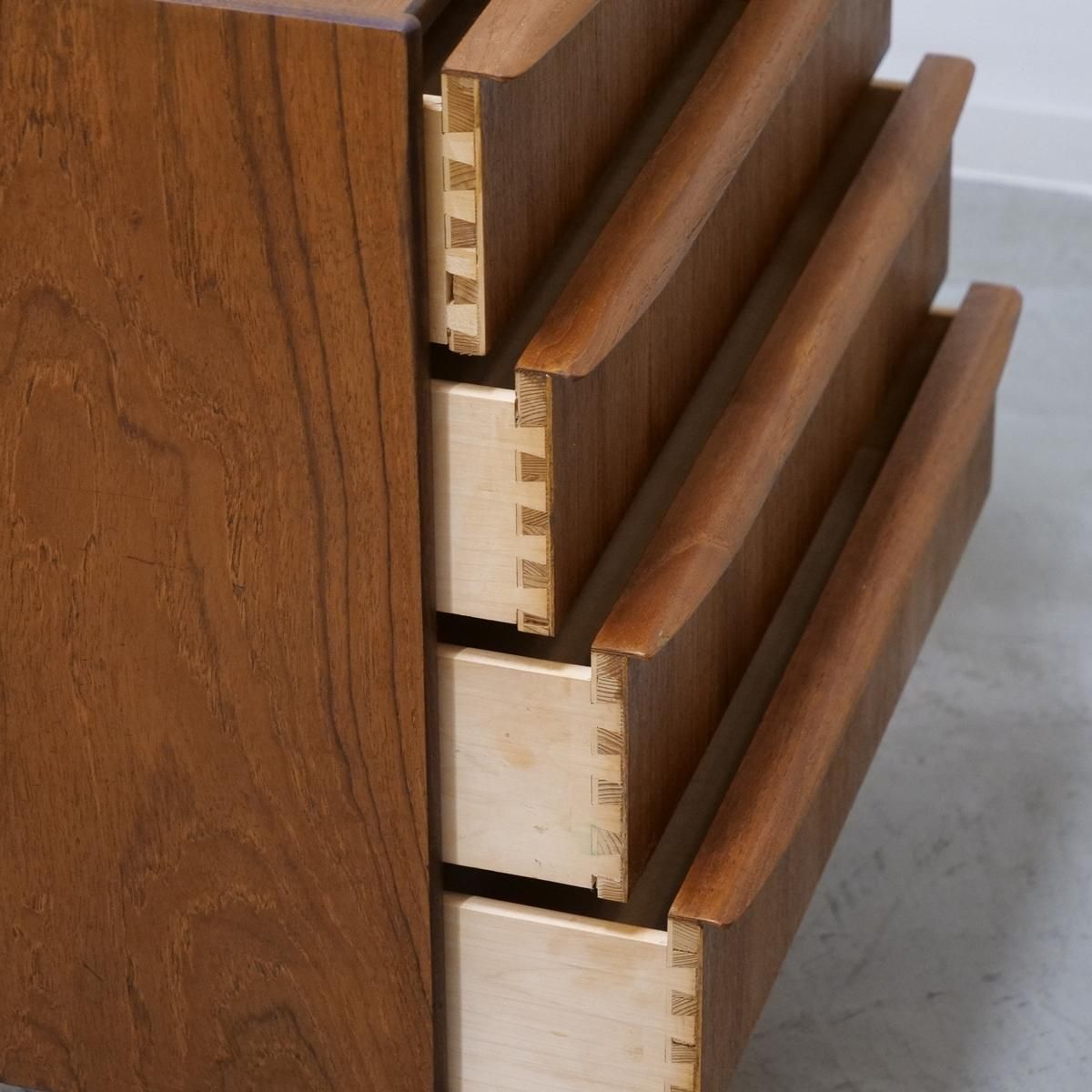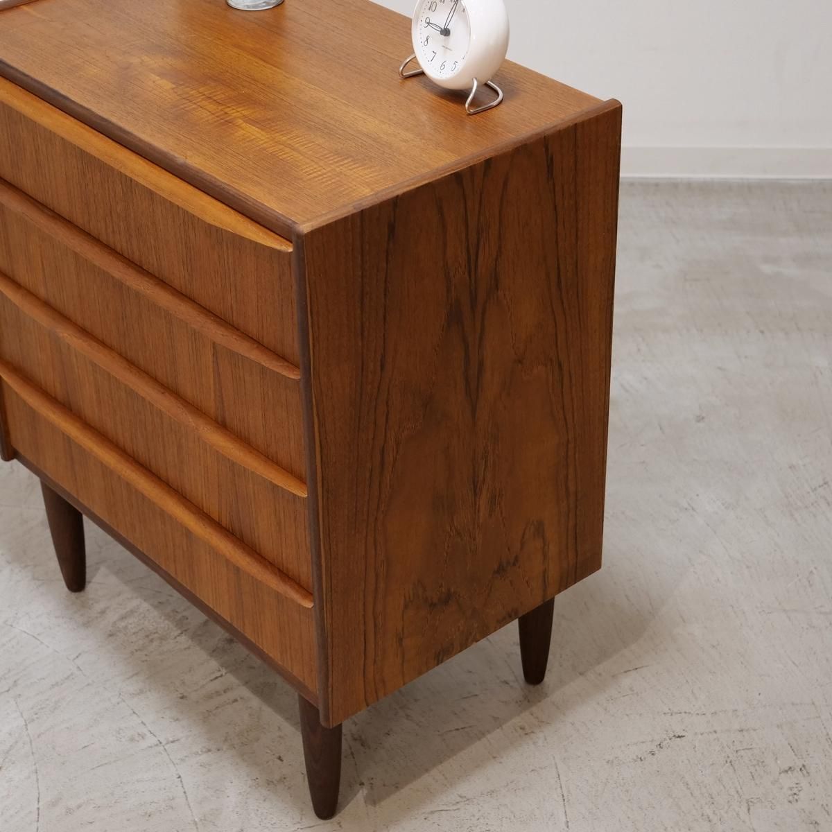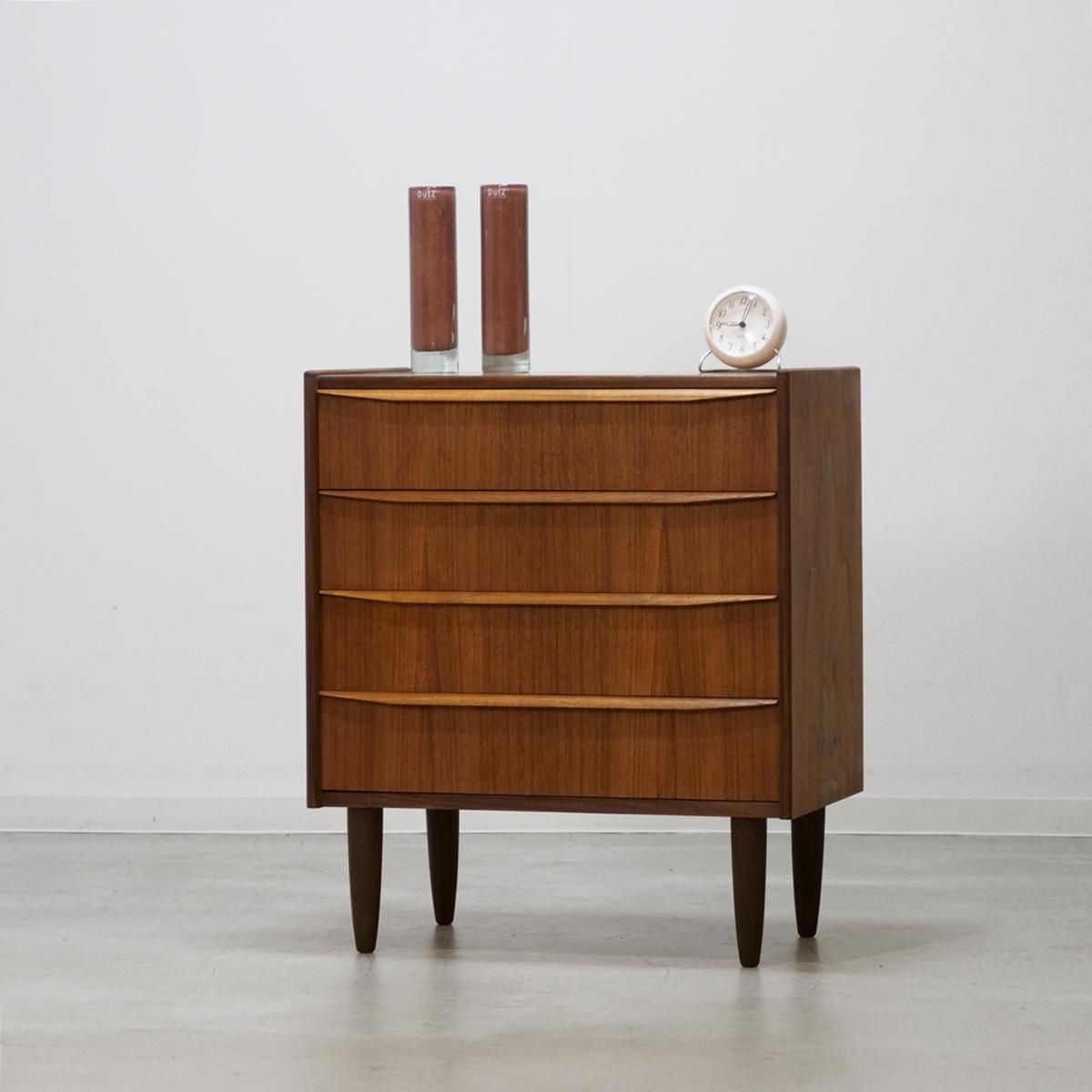 デンマークの「Hanbjerg Mobelfabrik」で製造されたチーク材の4段チェスト(ビンテージ)。