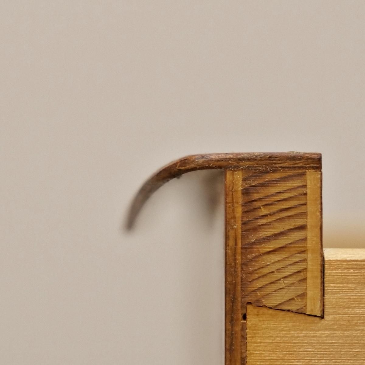 丸みを帯びた各パーツが色味が少し濃いためか、可愛らしさよりは格好良いという印象もつ。特に取っ手は、巻貝のような曲線と見た目の美しさを持たせつつ、指に馴染みやすく、引出が引きやすく実用性も高い。