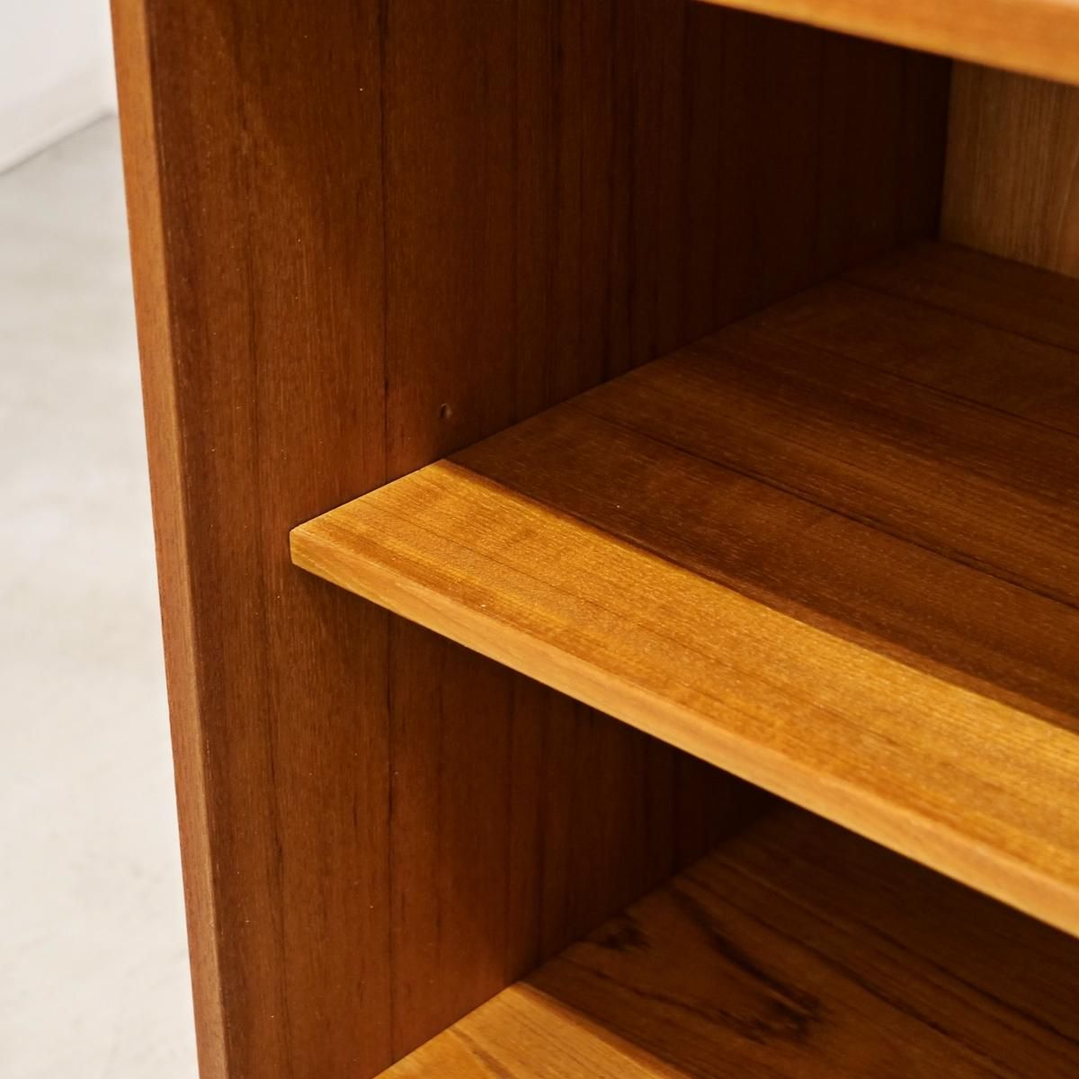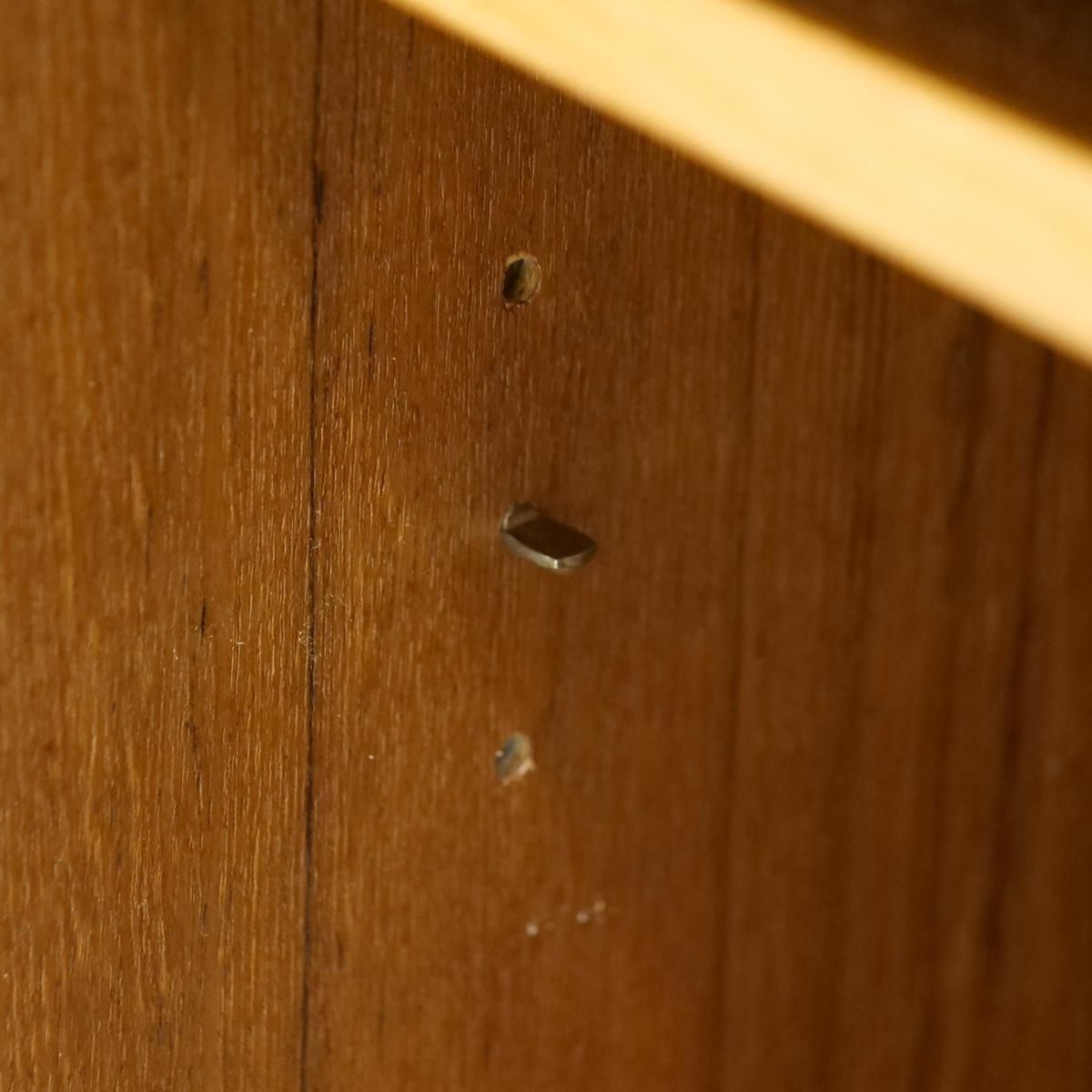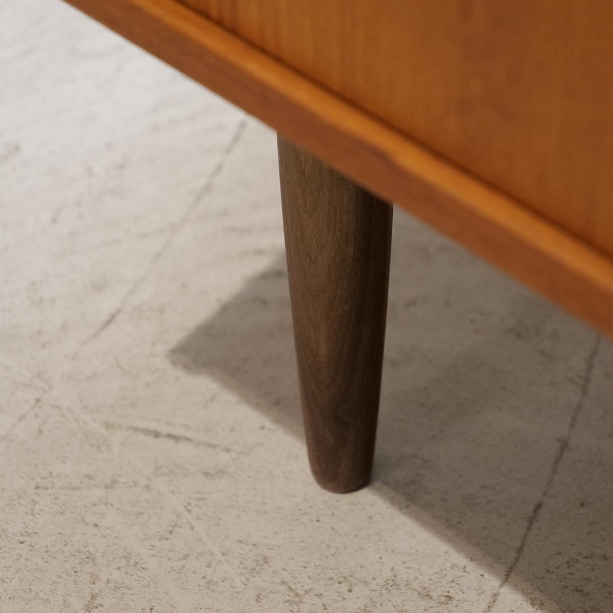 使われているチーク材は経年変化したことで優しい質感に。木目の美しさが際立ち、上質な空間を演出します。さらに、扉や引き出しの開閉もスムーズで、使い勝手も抜群です。