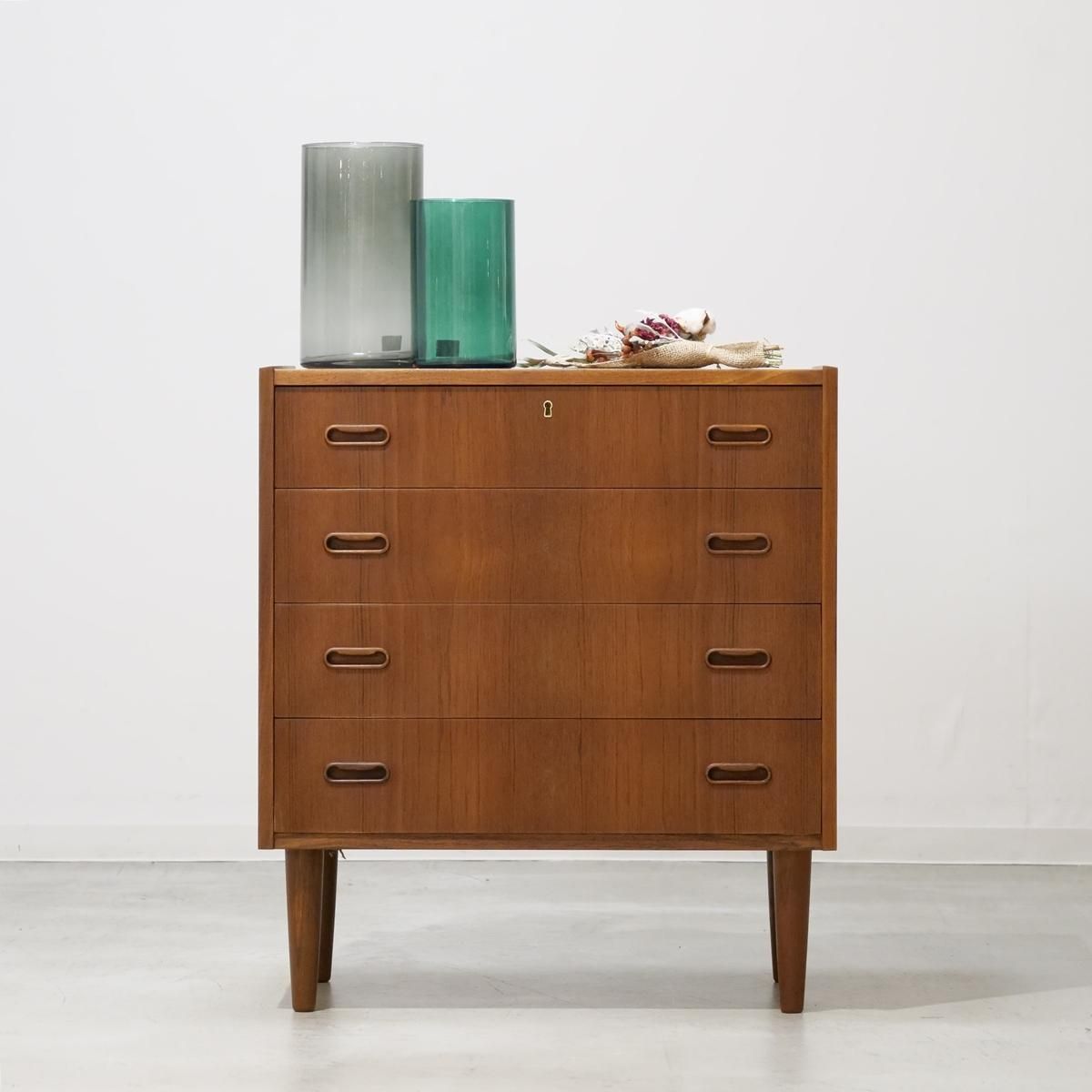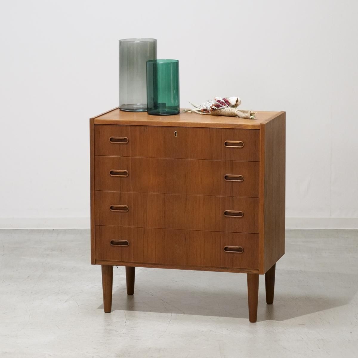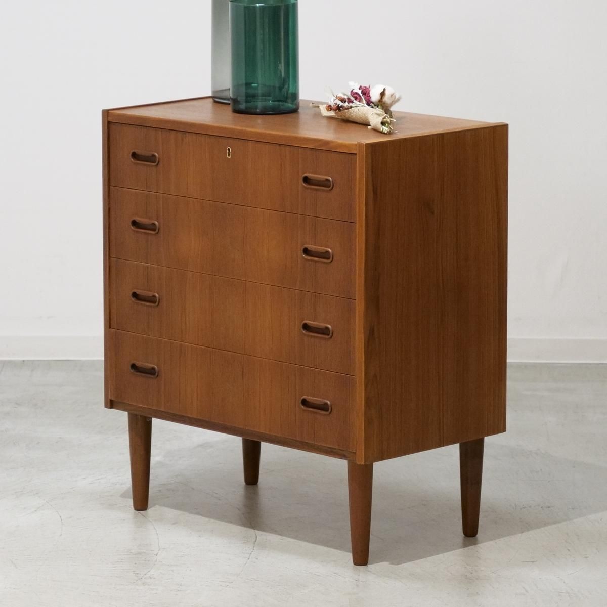 デンマークで買い付けたチーク材の4段チェスト(ビンテージ)。
