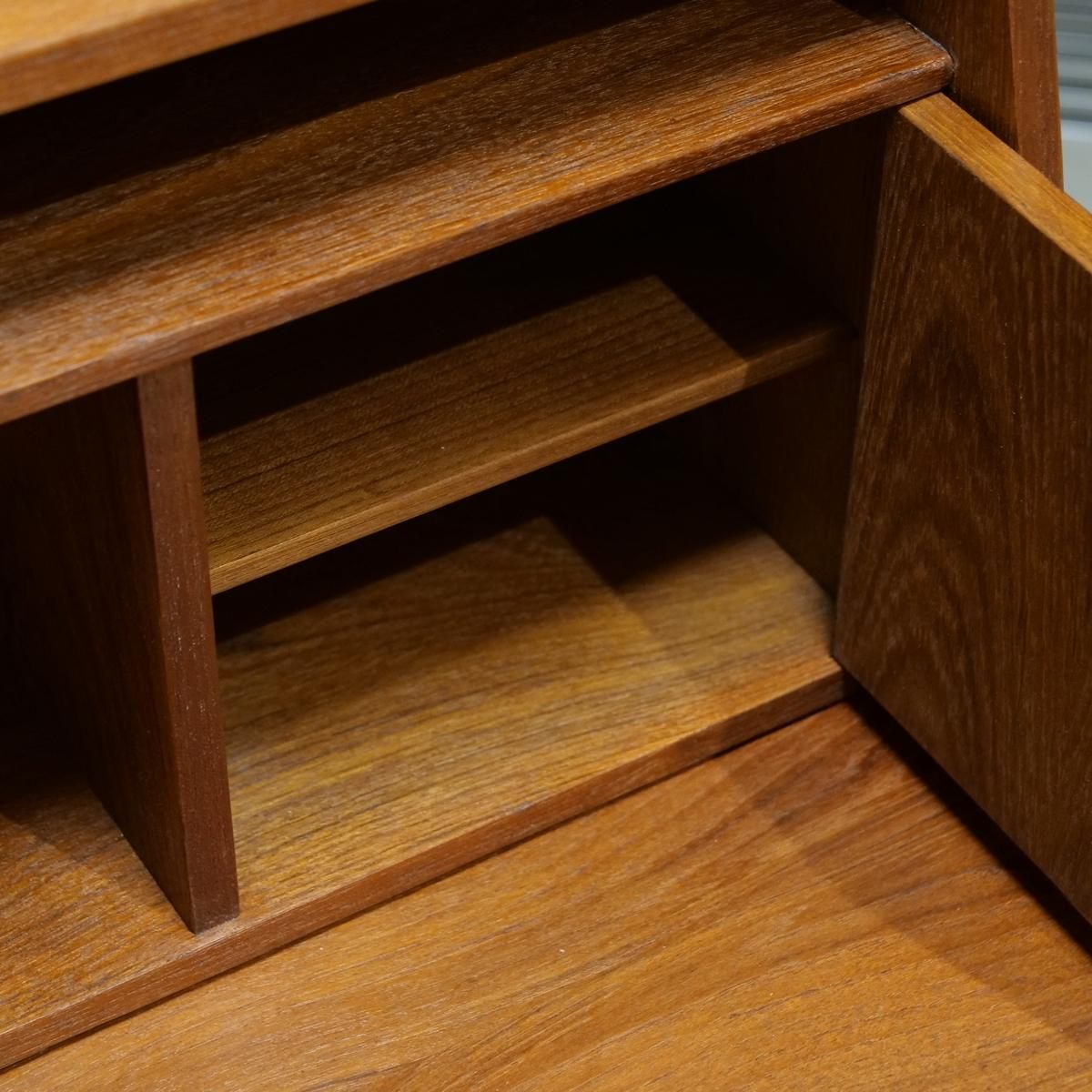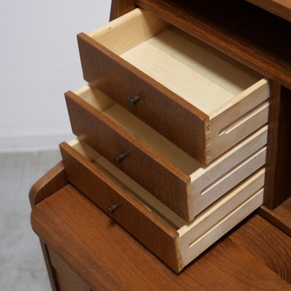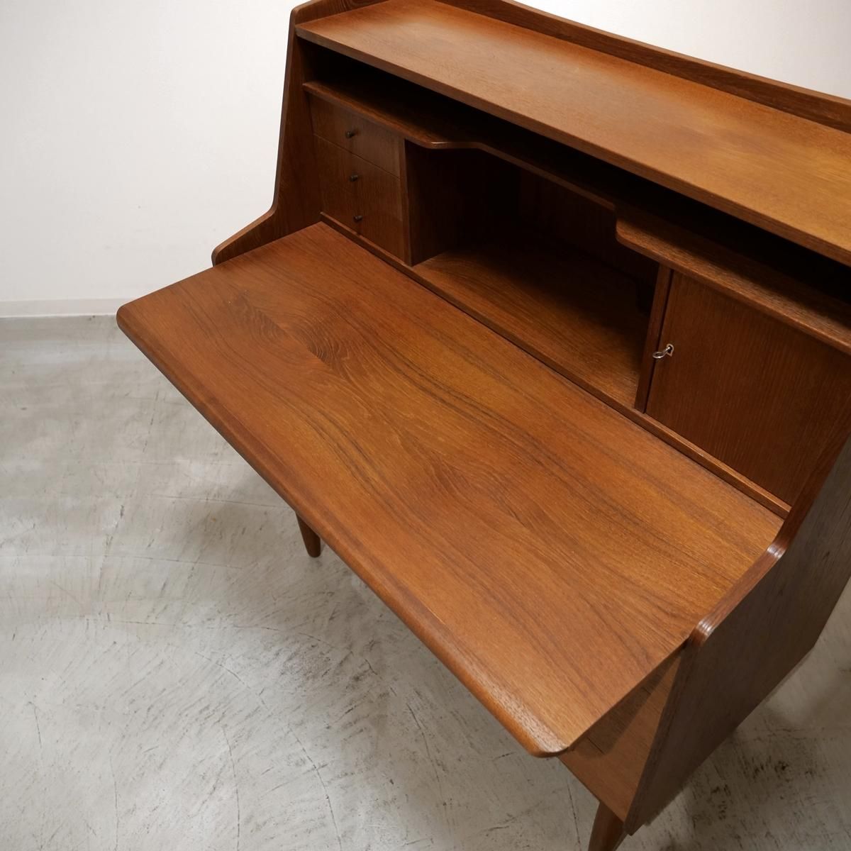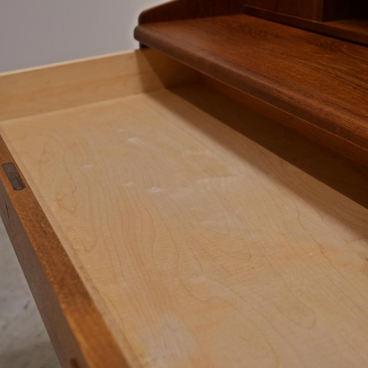 当時のデンマークの自宅にデスクまでは置けるスペースがなく、デスク兼任のキャビネットを置いていた家庭が多かったため、様々な形が存在するライティングデスク。収納とワークとのバランスが良く、収納力にも長けた作品となります。