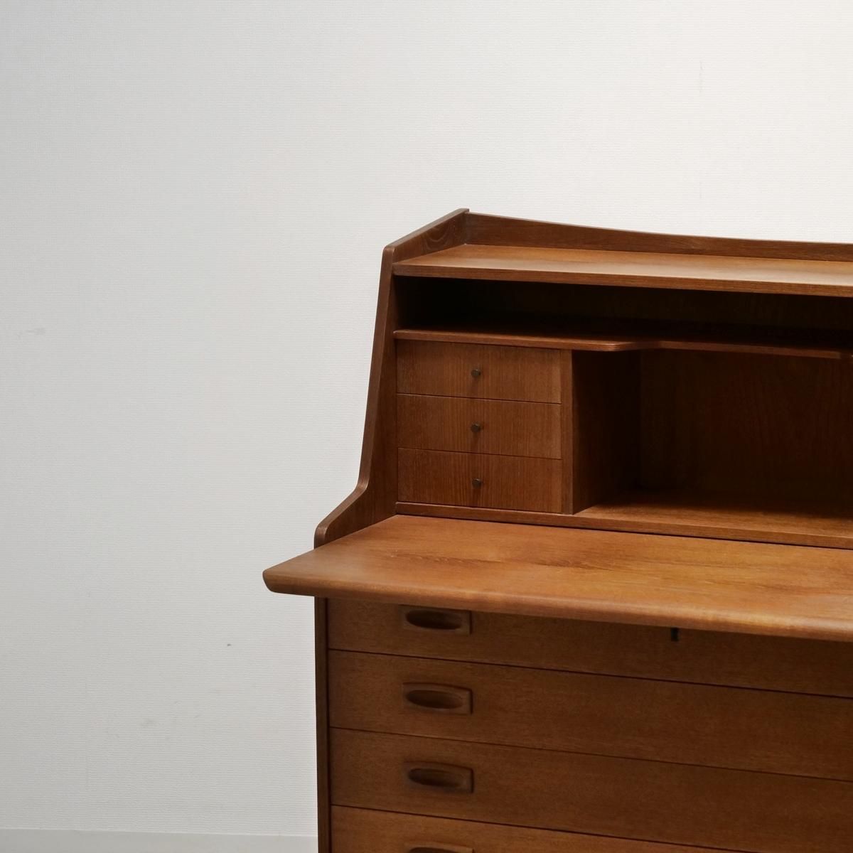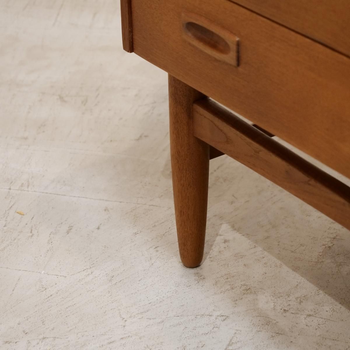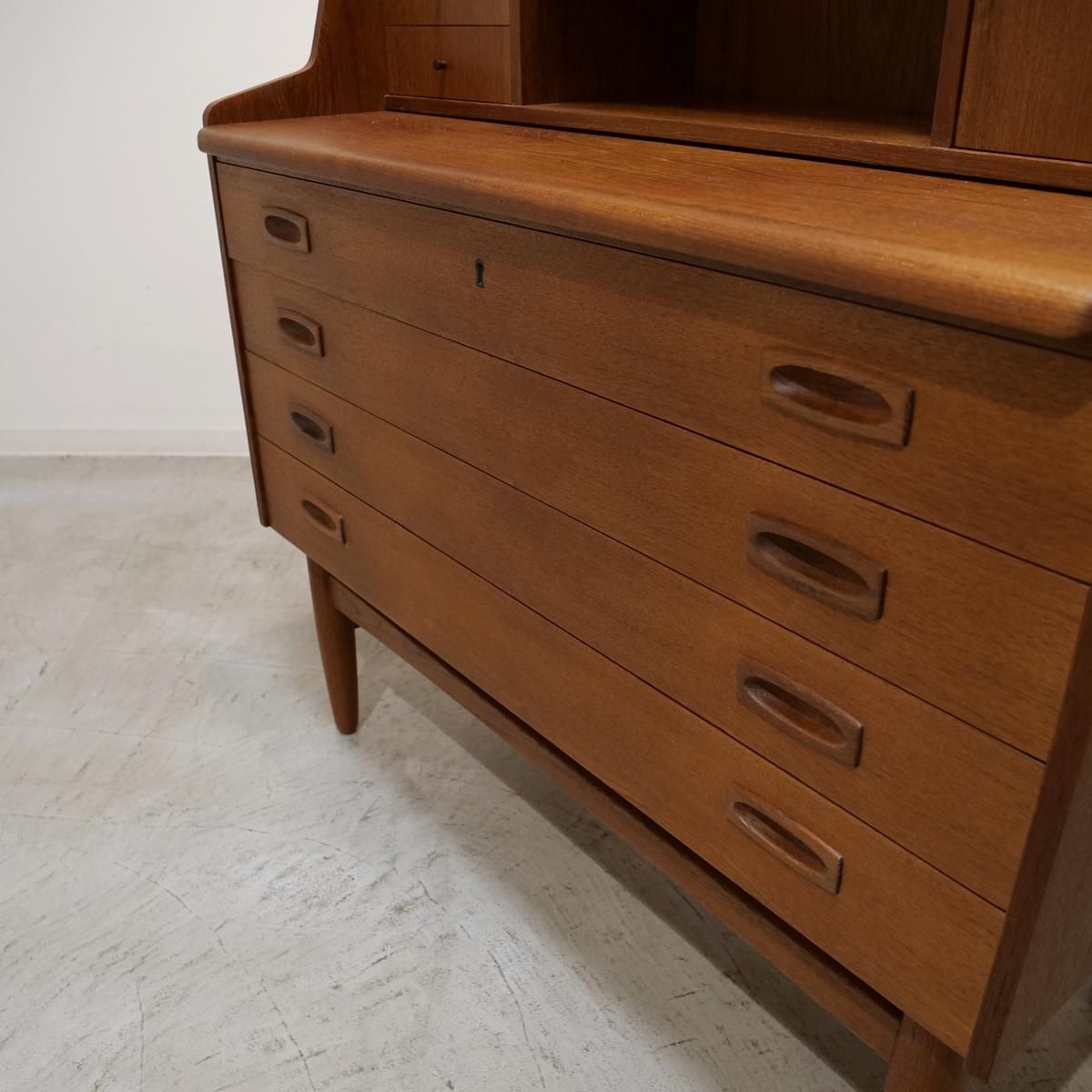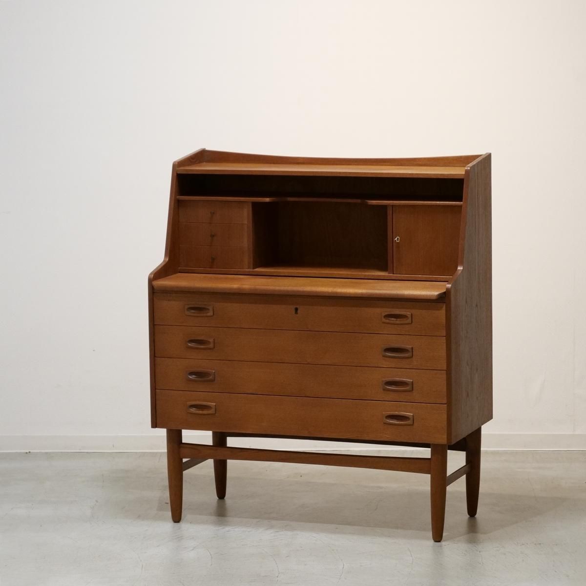 当時のデンマークの自宅にデスクまでは置けるスペースがなく、デスク兼任のキャビネットを置いていた家庭が多かったため、様々な形が存在するライティングデスク。収納とワークとのバランスが良く、収納力にも長けた作品となります。