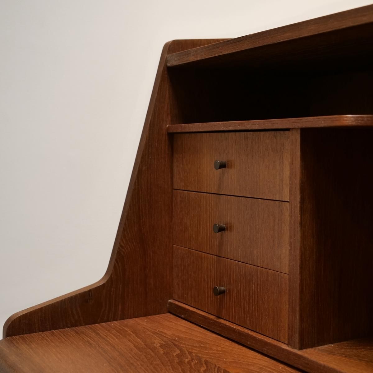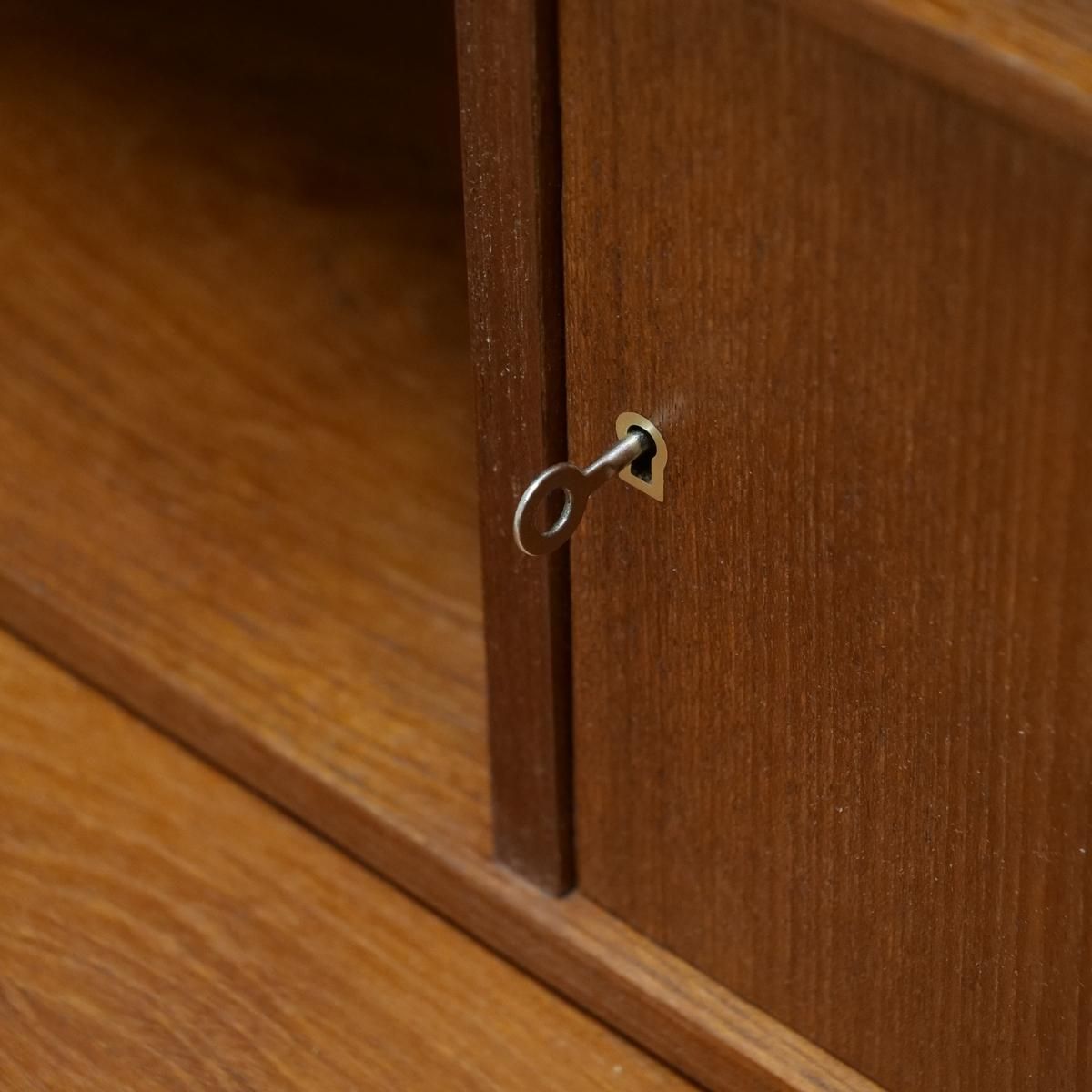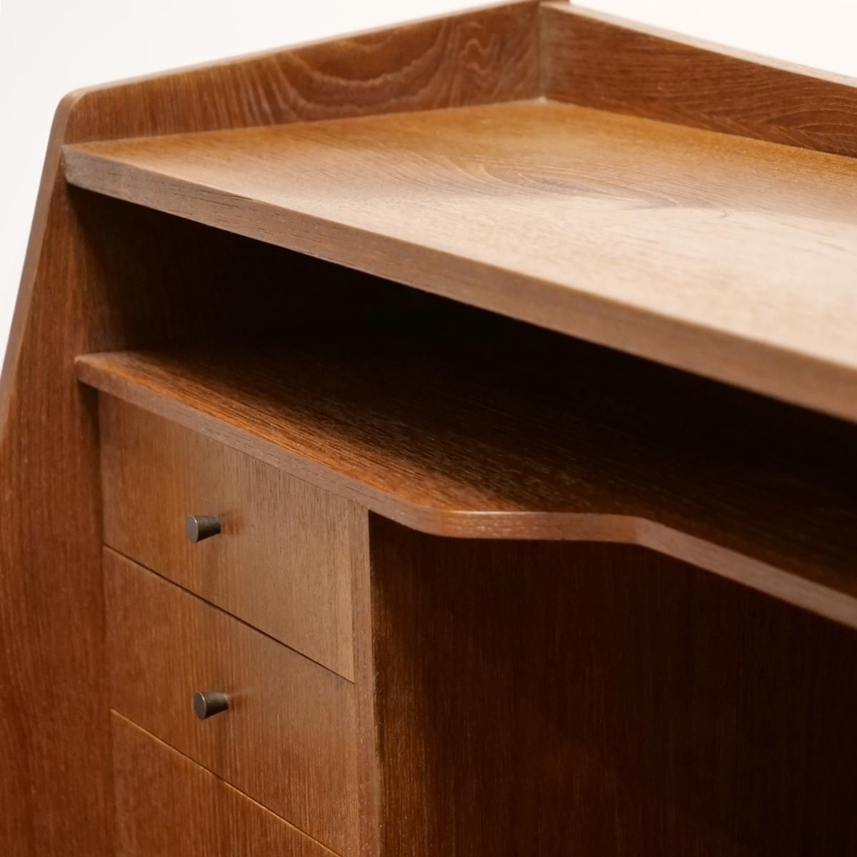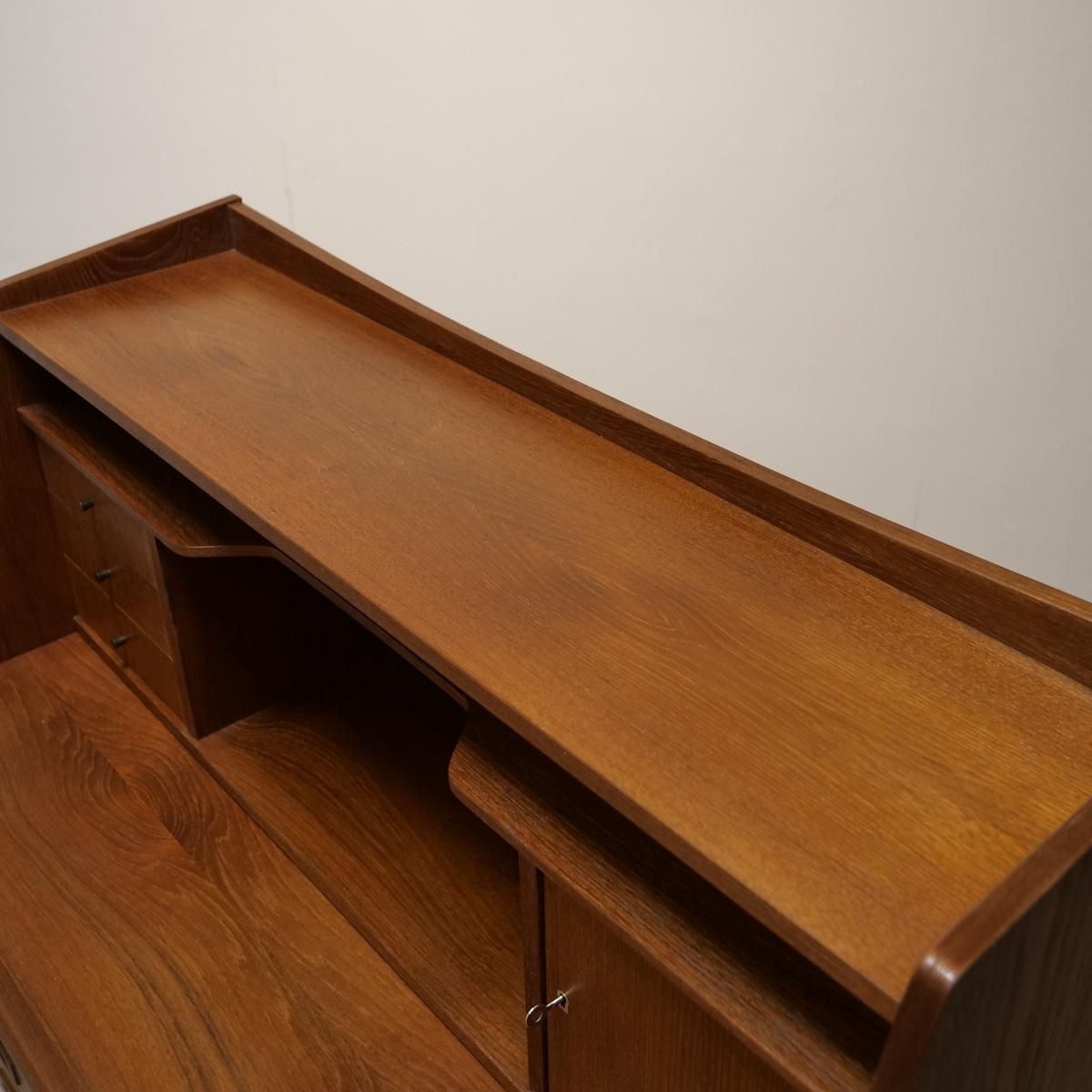 当時のデンマークの自宅にデスクまでは置けるスペースがなく、デスク兼任のキャビネットを置いていた家庭が多かったため、様々な形が存在するライティングデスク。収納とワークとのバランスが良く、収納力にも長けた作品となります。