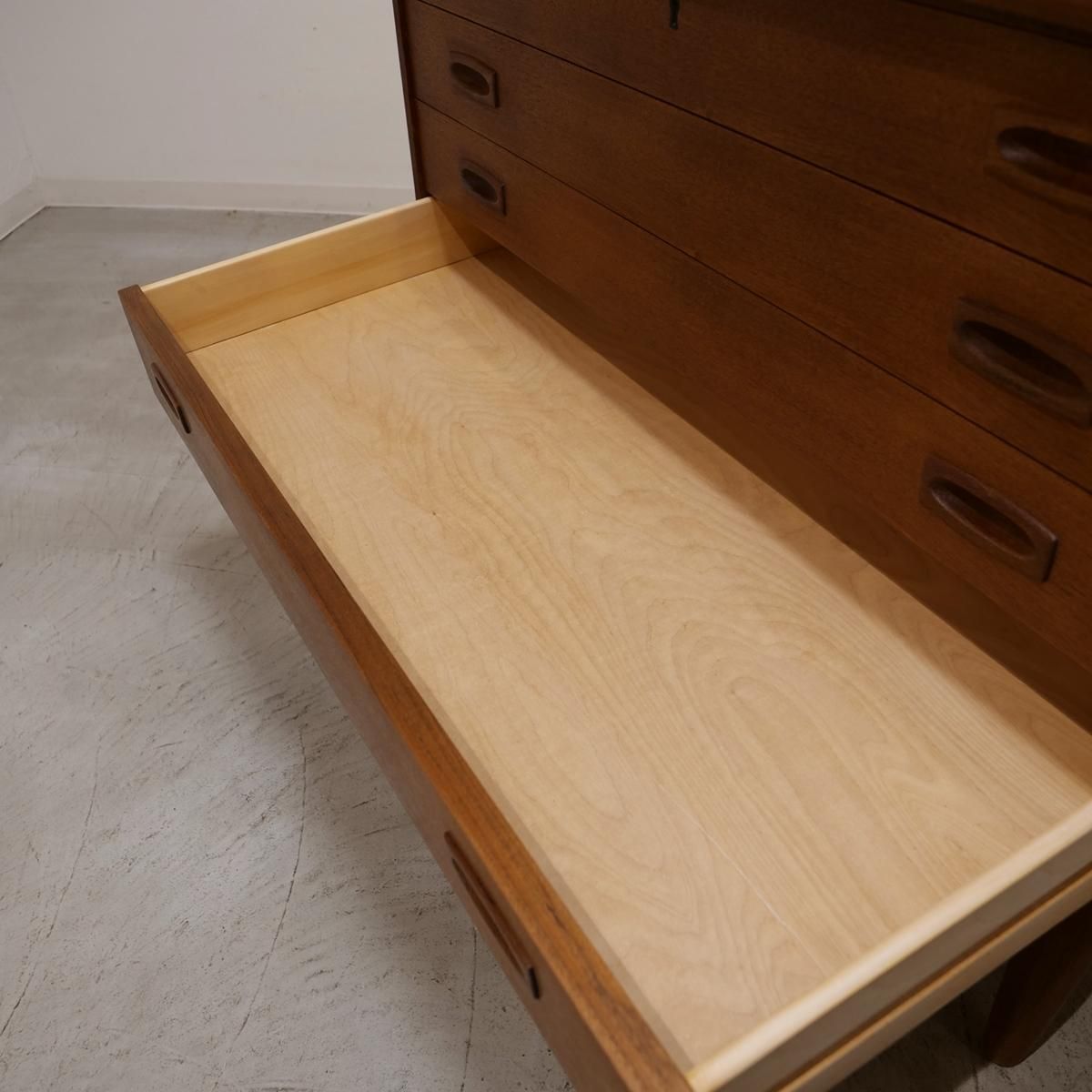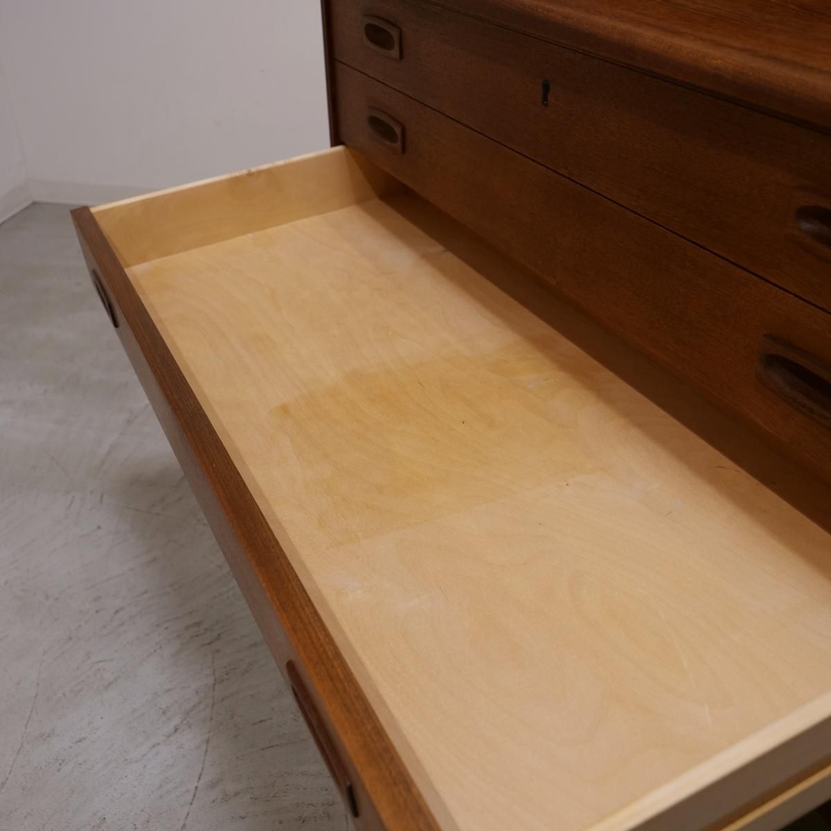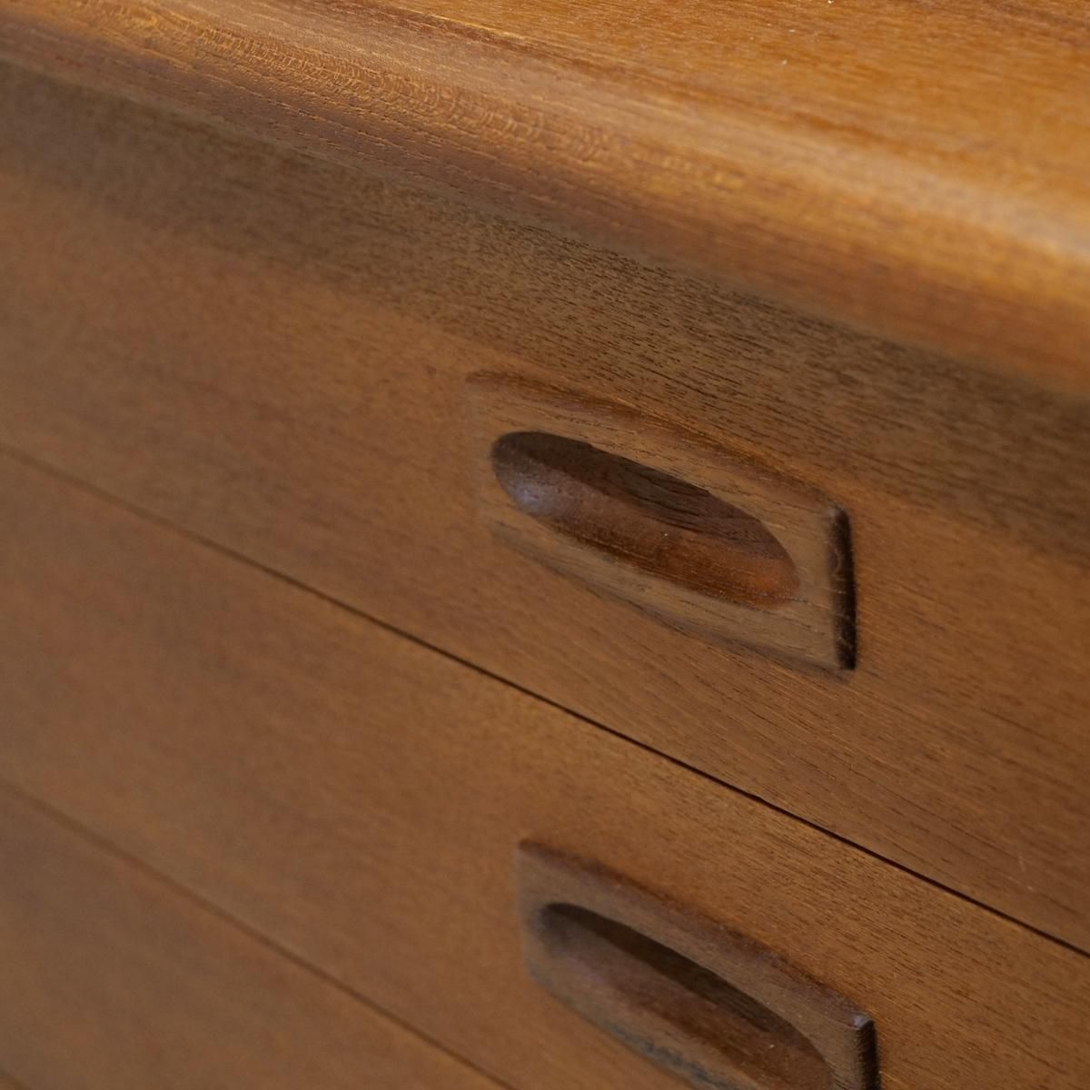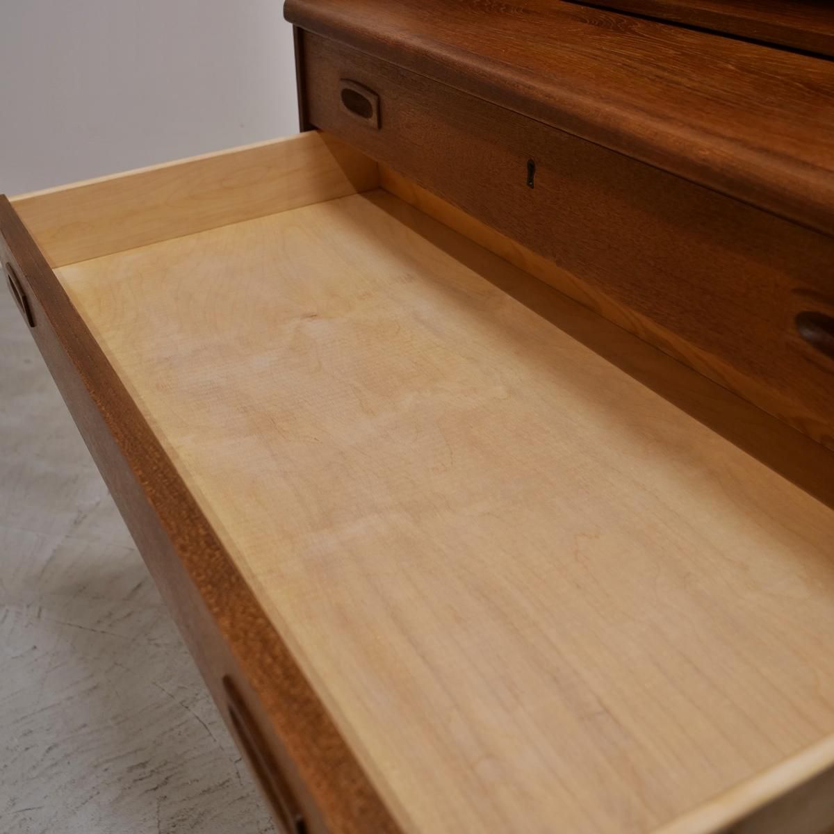 当時のデンマークの自宅にデスクまでは置けるスペースがなく、デスク兼任のキャビネットを置いていた家庭が多かったため、様々な形が存在するライティングデスク。収納とワークとのバランスが良く、収納力にも長けた作品となります。