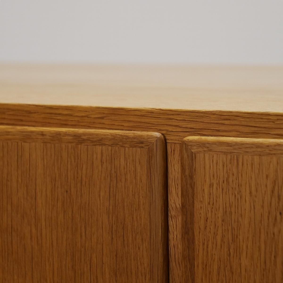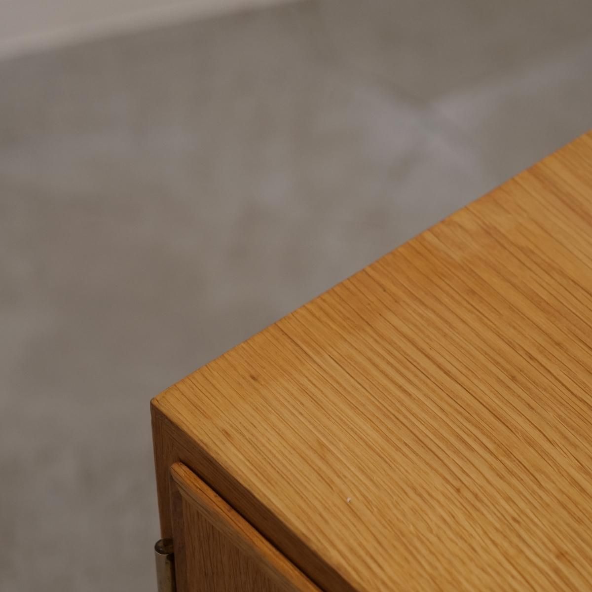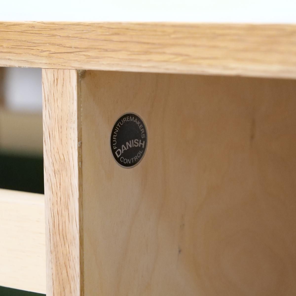 シンプルな佇まいの中に宿る、計算し尽くされたプロポーション。オーク材の穏やかな木目が、空間に温もりと品格をもたらします。そして揺るぎない品質を「Danish Control」のマークが証明します。新品では二度と手に入らない、時が育てた深い表情。