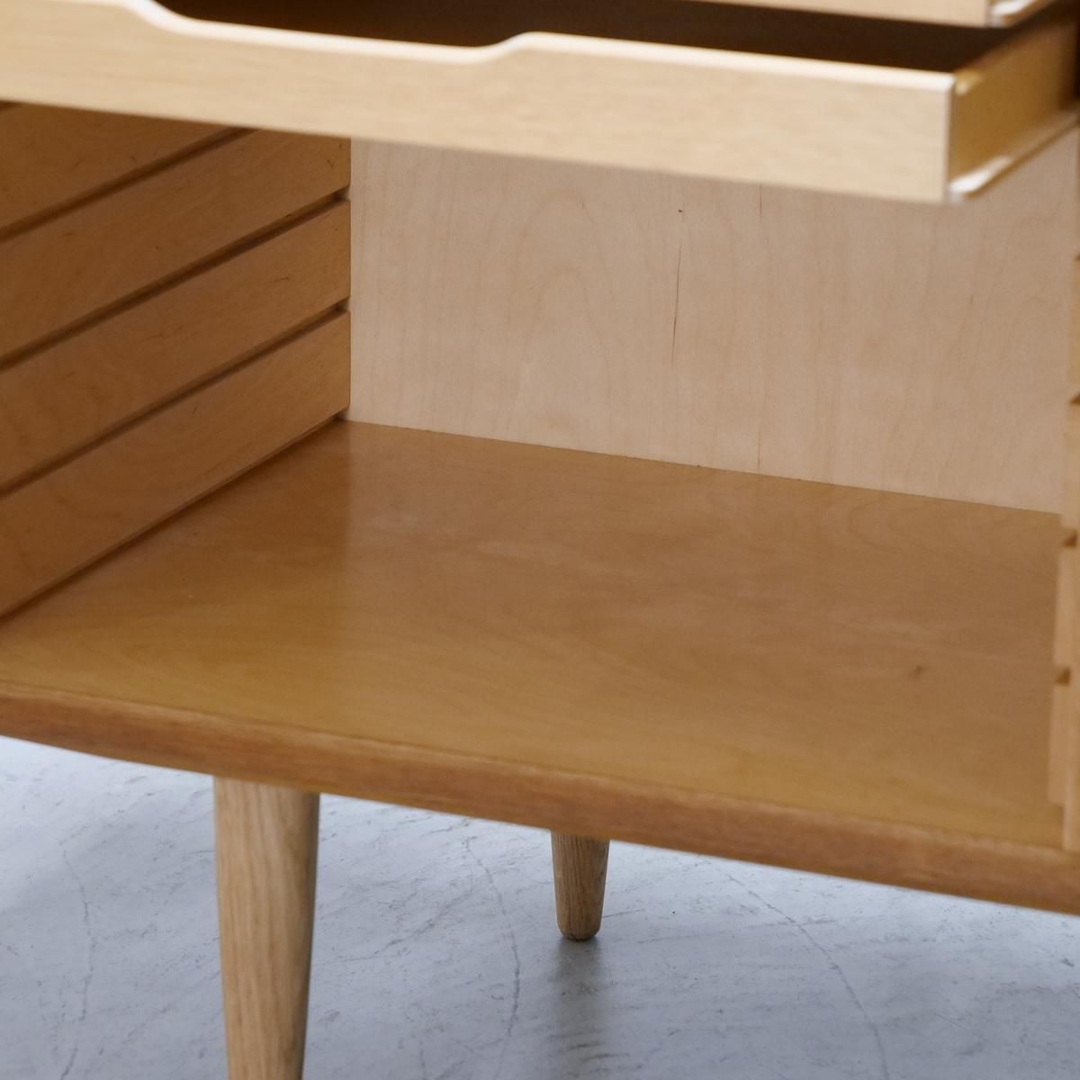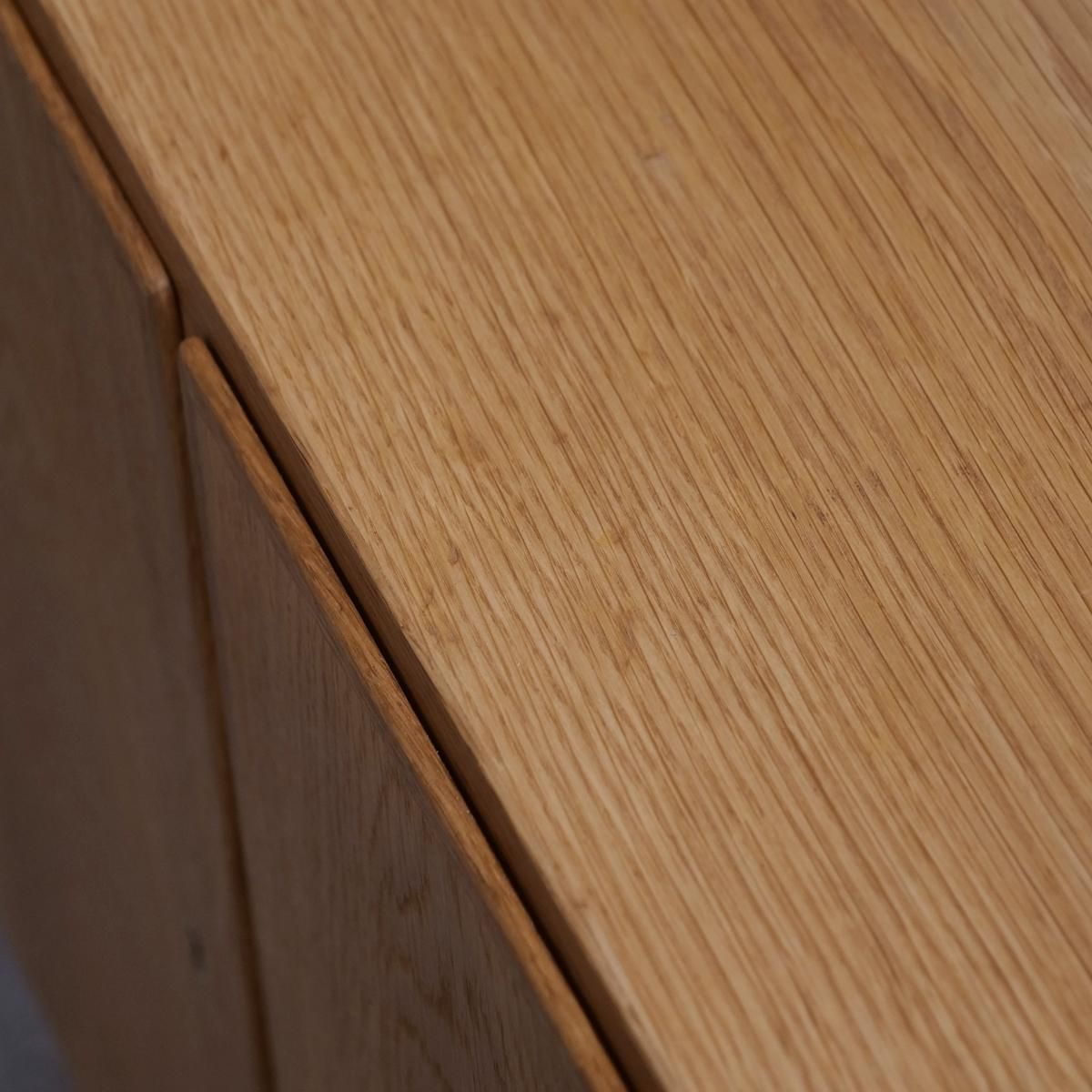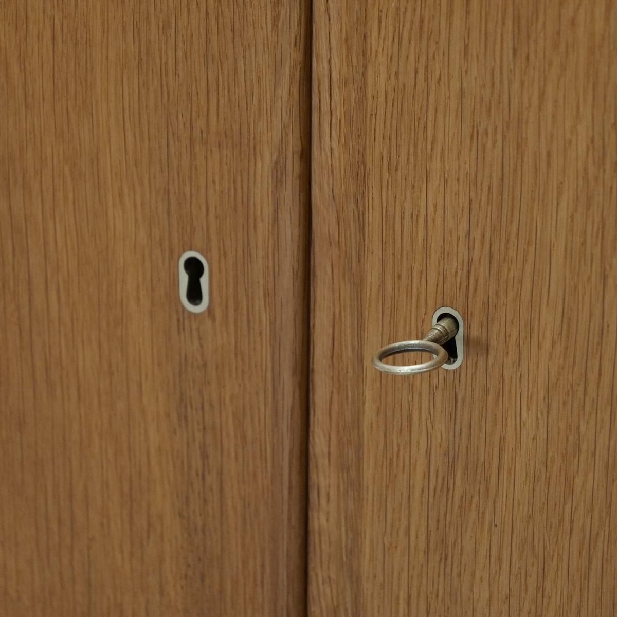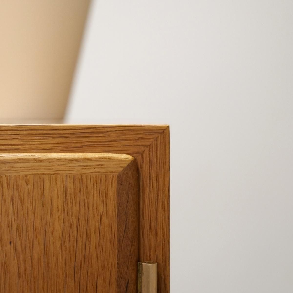 シンプルな佇まいの中に宿る、計算し尽くされたプロポーション。オーク材の穏やかな木目が、空間に温もりと品格をもたらします。そして揺るぎない品質を「Danish Control」のマークが証明します。新品では二度と手に入らない、時が育てた深い表情。
