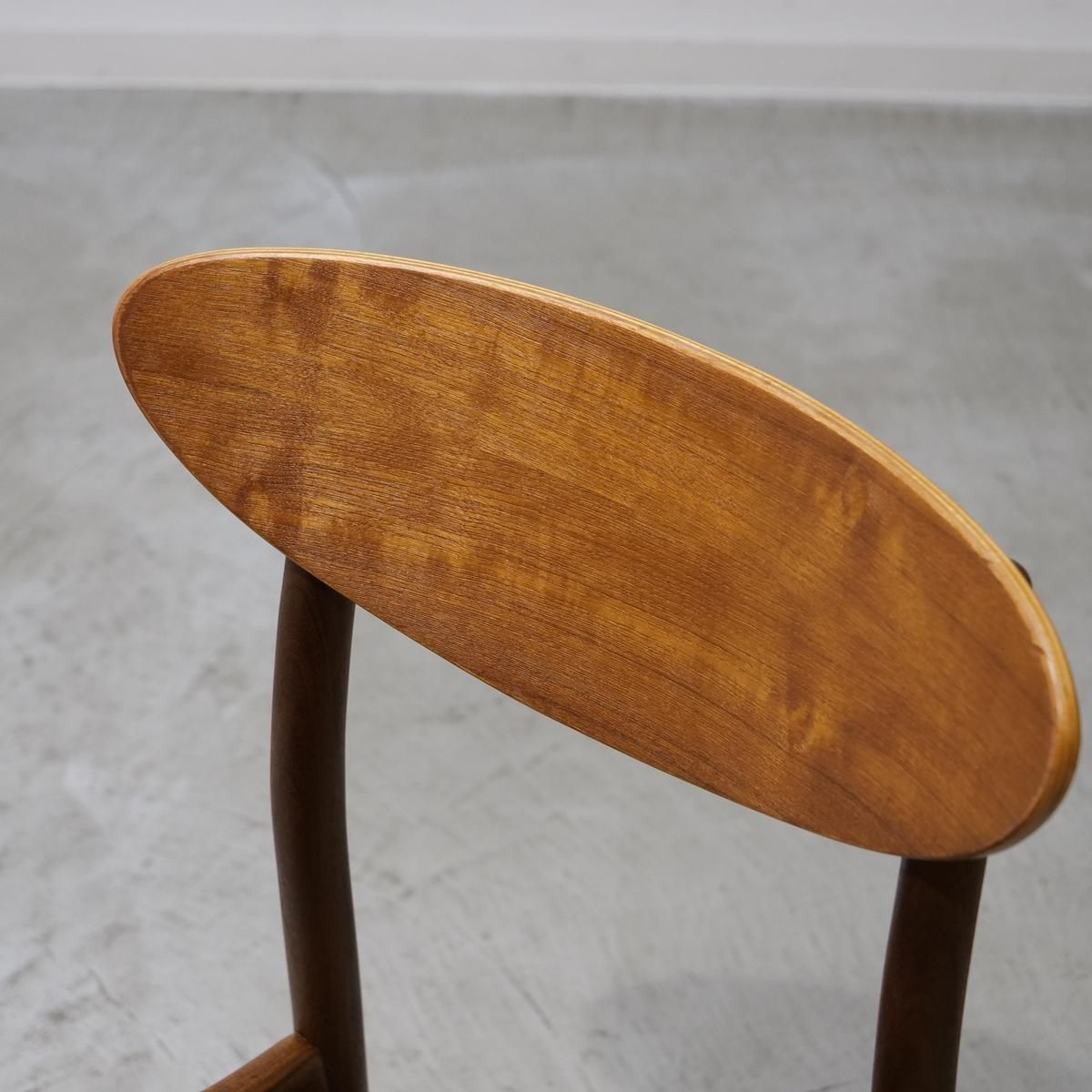 ゆるやかな曲線を描く優美な背もたれは、背中を優しく受け止めます。チーク材の温かな木目が、視線を捉える美しさ。細部まで丁寧に仕上げられ、確かな構造フレーム、しっかりとした貫。1960年代の職人技が、今も健在です。