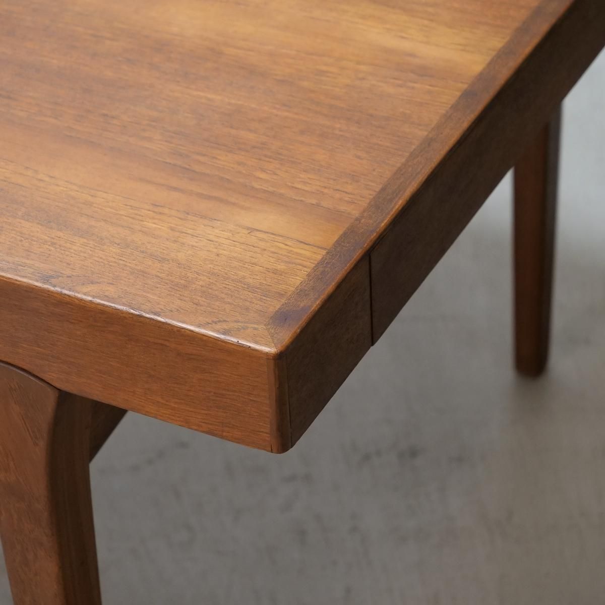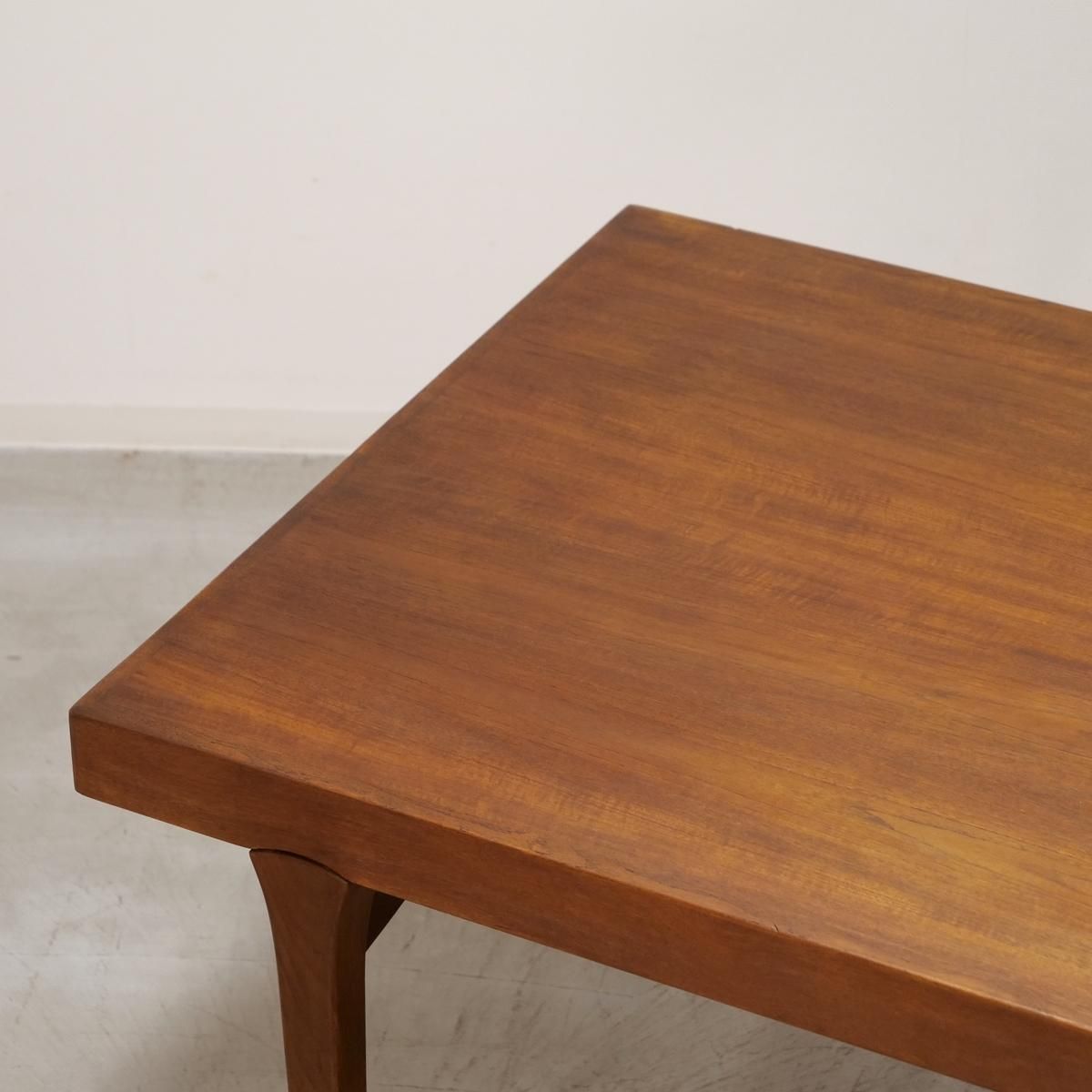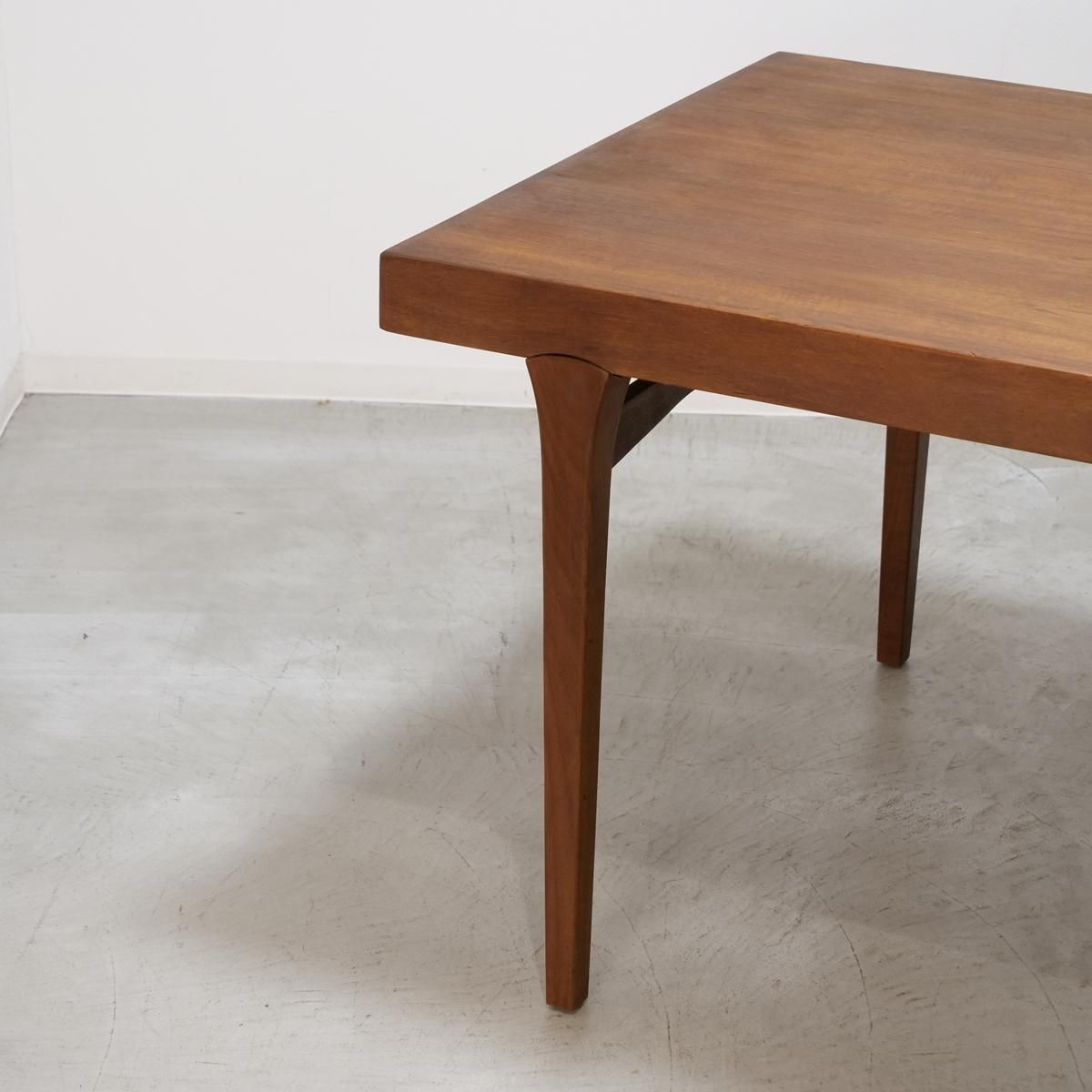 1970年代、デンマークで生まれた北欧ヴィンテージのダイニングテーブル。このテーブルの魅力は、何よりも印象的な脚周りのデザインです。天板を支える脚部には、曲線を描く補強材が美しく配され、構造美と機能美を見事に融合させています。まるで彫刻のように、力強くも繊細な表情を見せるフォルム。それは黄金期に培われた技術と美意識を受け継ぎながら、独自の進化を遂げた時代だからこそ生まれた家具としての完成度の高さを物語っています。