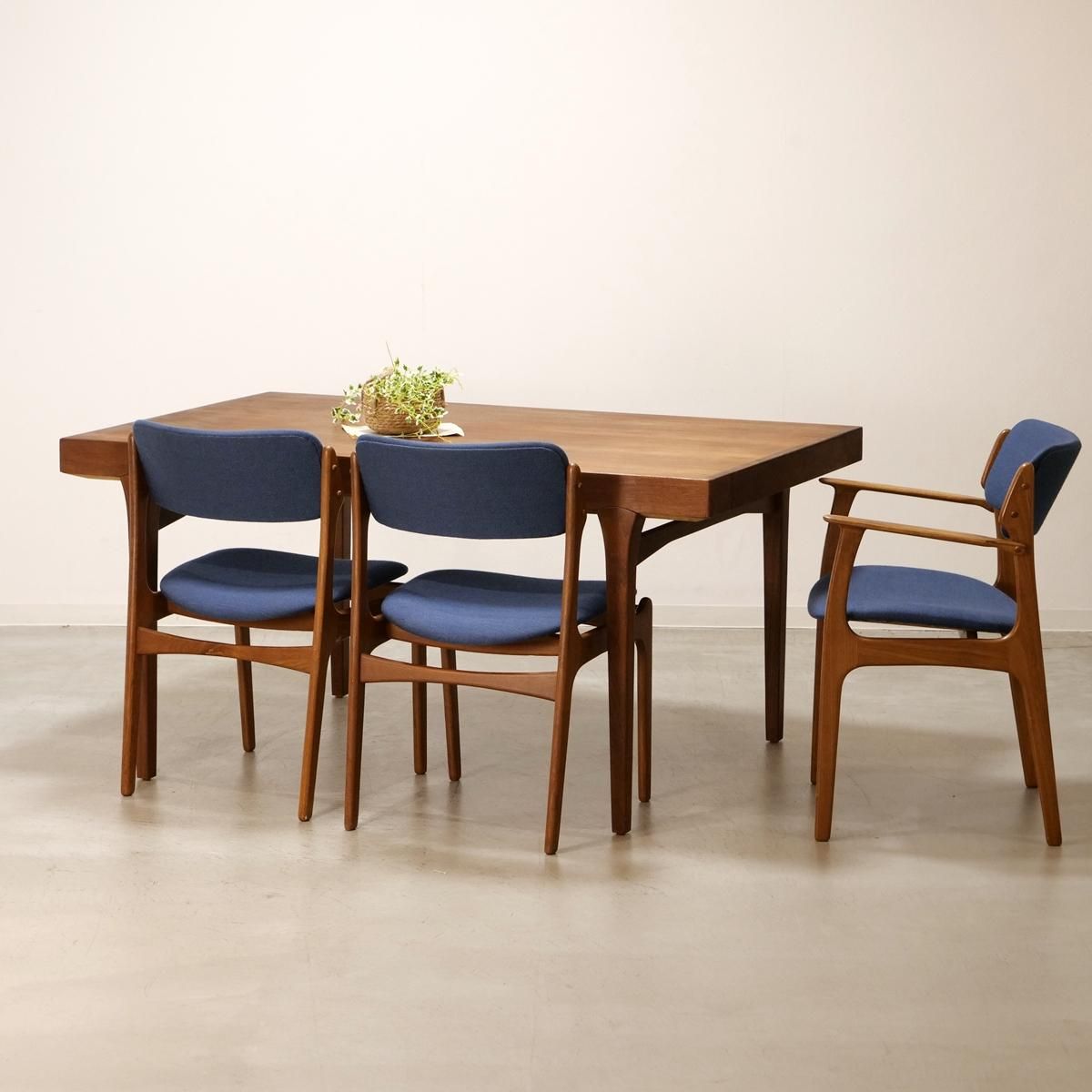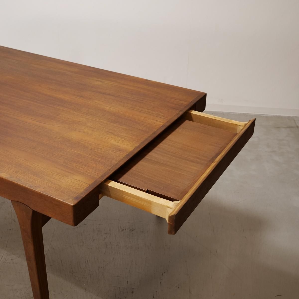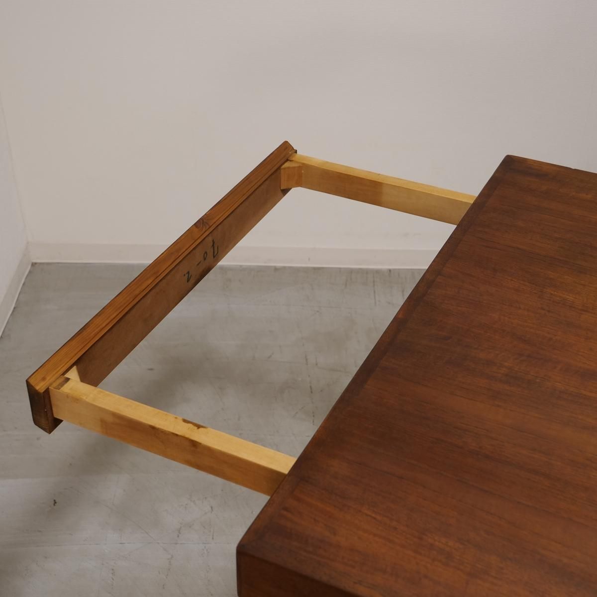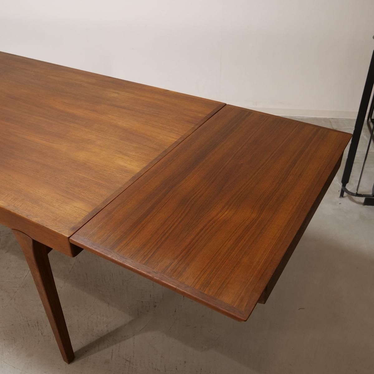 デンマーク国内で一番多く製造され、一番人気のあった伸長式スタイル。横から見た際の天板2重構造になっており、下の天板を引くことで伸長する造りとなっています。