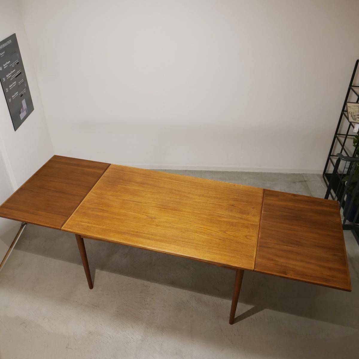 デンマーク国内で一番多く製造され、一番人気のあった伸長式スタイル。横から見た際の天板2重構造になっており、下の天板を引くことで伸長する造りとなっています。
