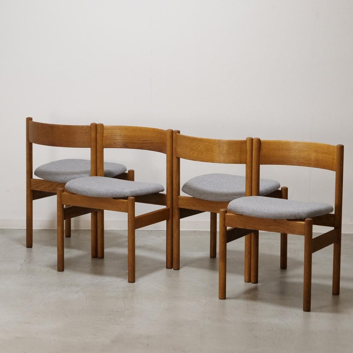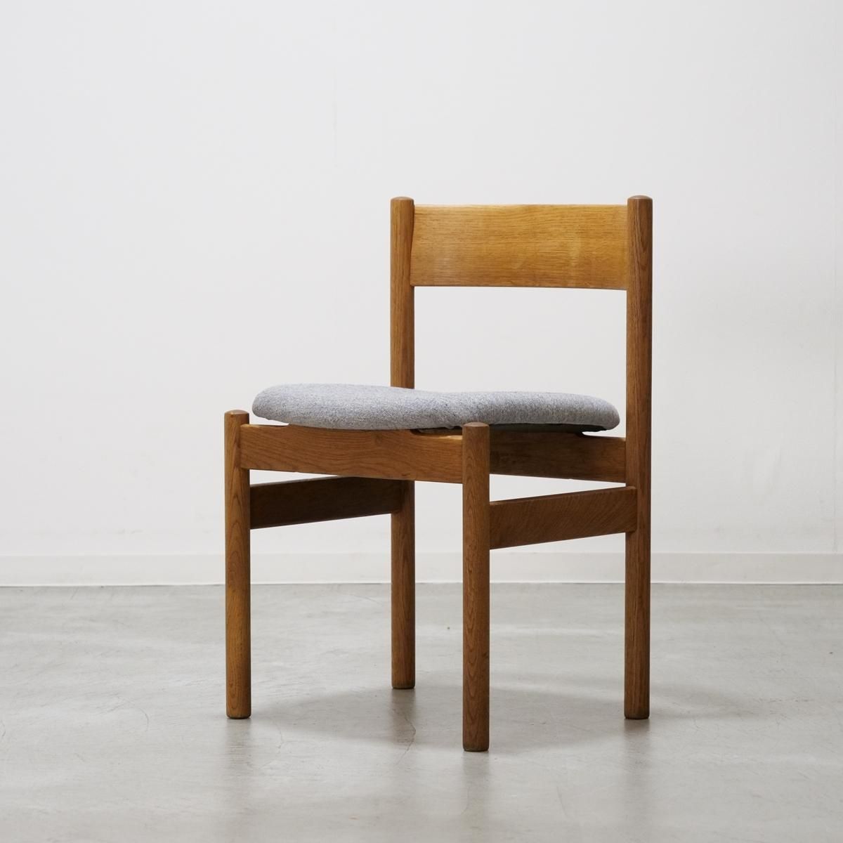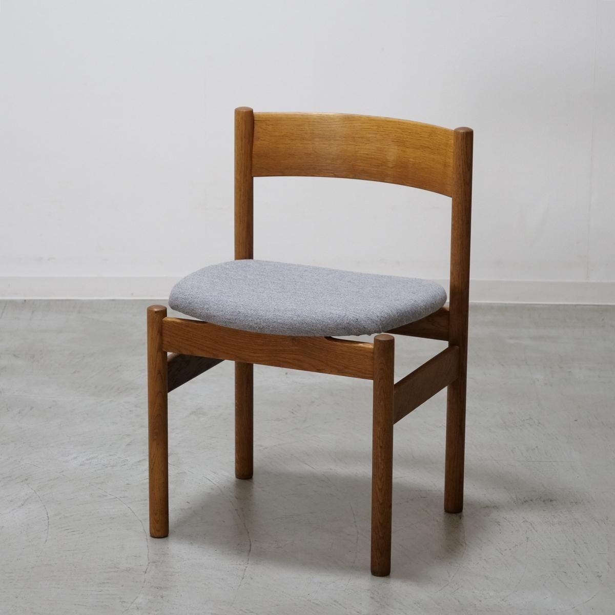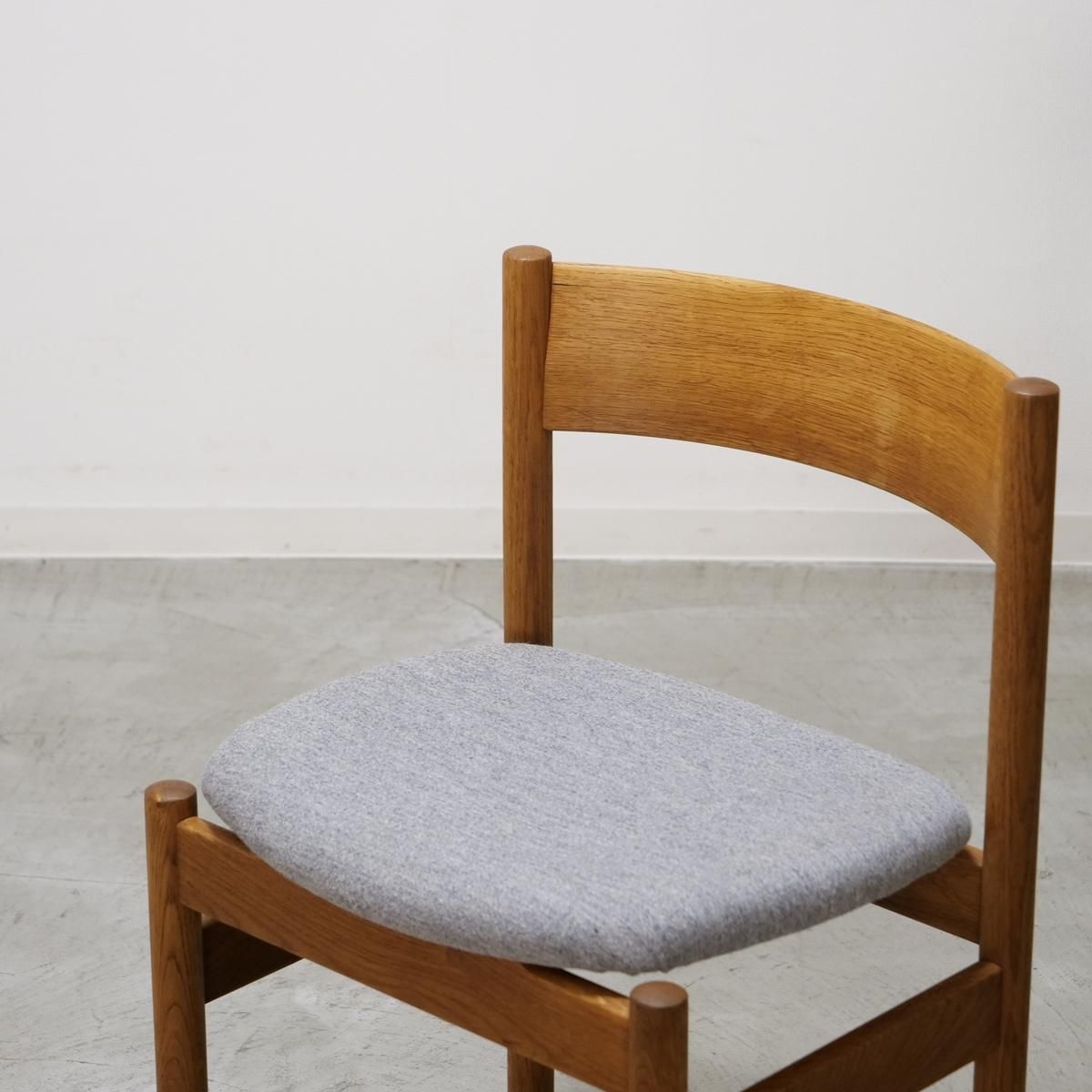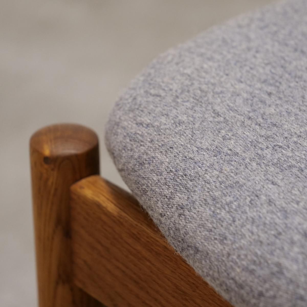 木部はサンディング後にオイル塗装を施し、座面は、ウレタン交換を行い、デンマークで買い付けたウール混在のファブリックにて張替えを行いました。
