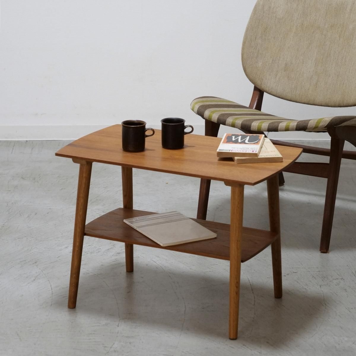 北欧デンマークのビンテージ家具/サイドテーブル(チーク・オーク)幅62cm|UD21096