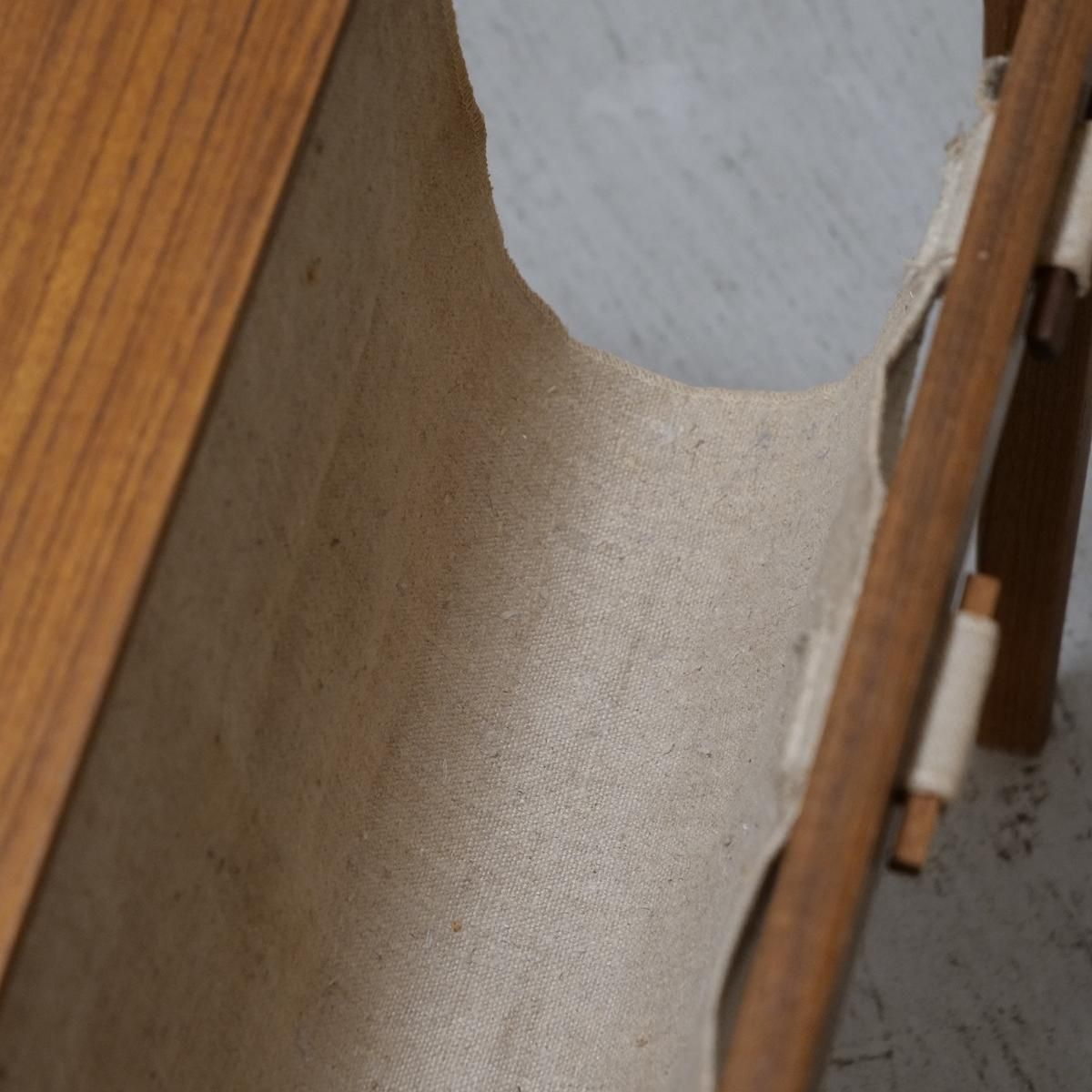 優しい飴色の「チーク材」と、ざっくりとした素朴な「キャンバス生地」。