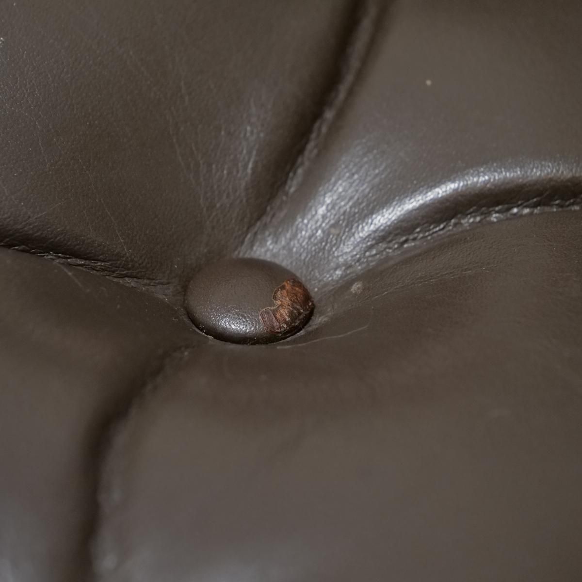 ボタン留めのクラシックな意匠が、空間に上品な重厚感を添えています。