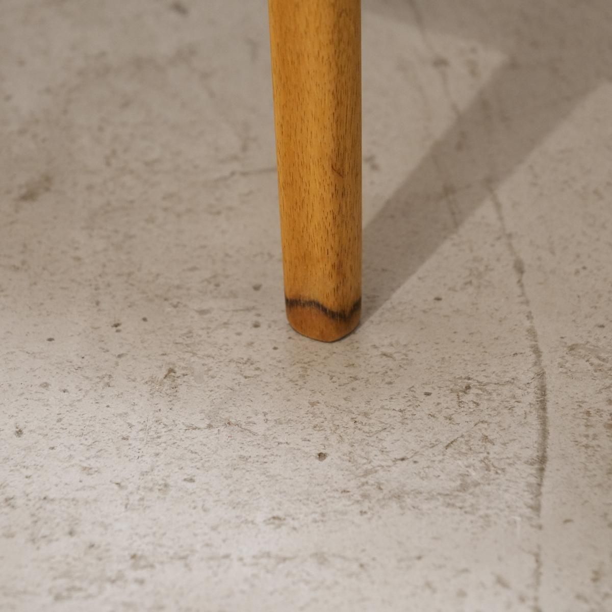 脚の先端に、時間が残した痕跡があります。おそらく水分によるものでしょうか。床に置かれた状態では目に入らない場所ですが、ビンテージである証として、正直にお伝えします。