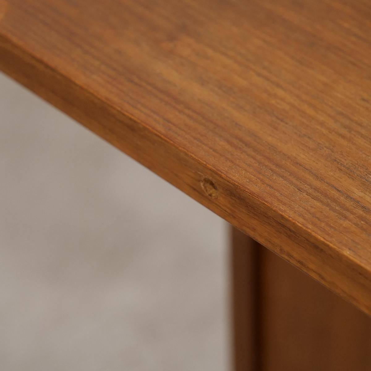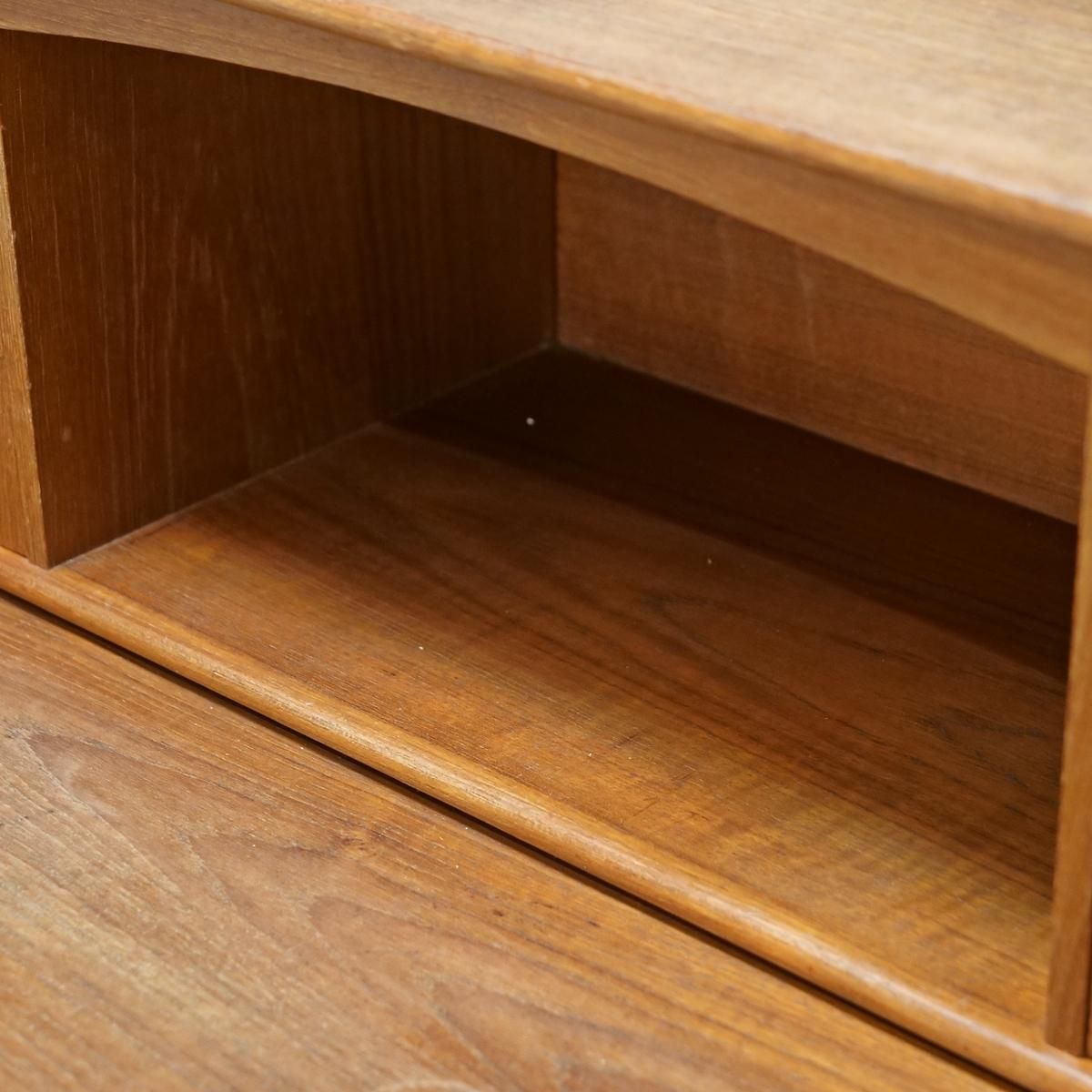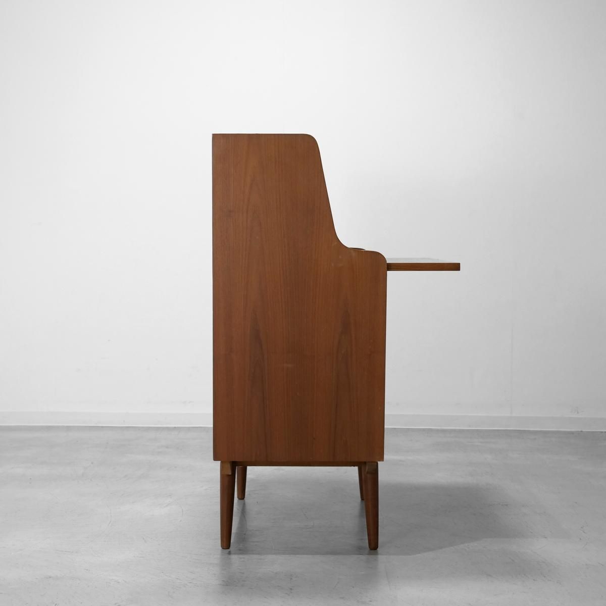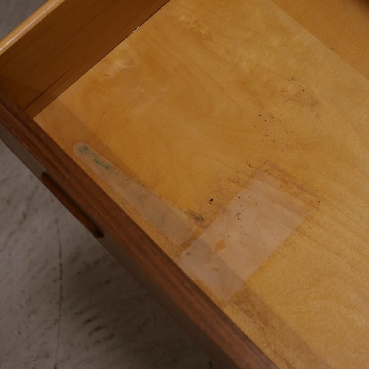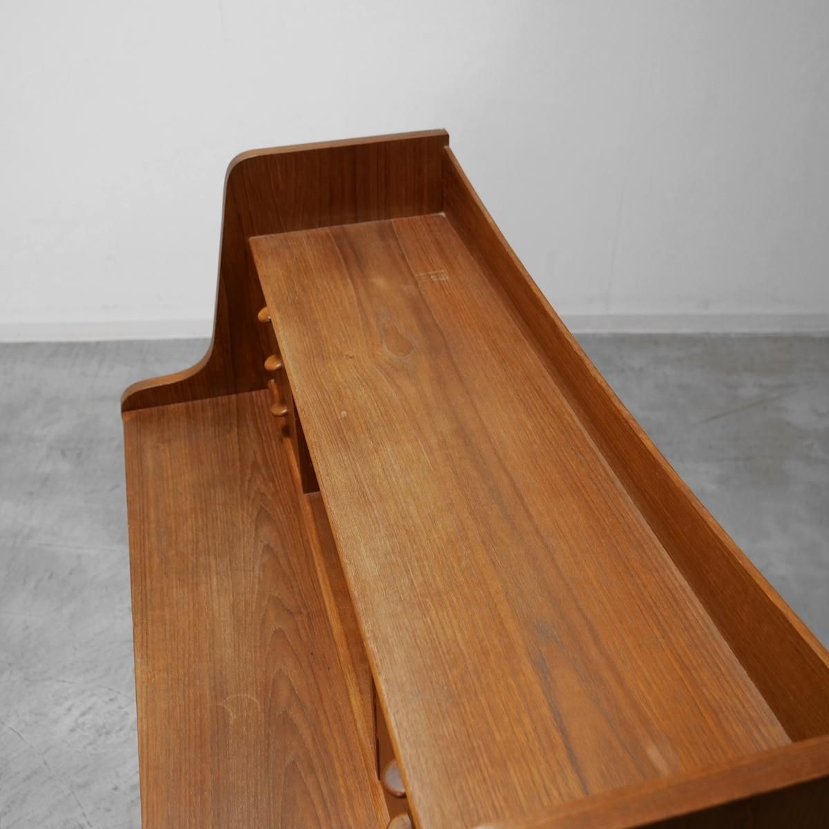 チーク材の飴色の木肌が、50年以上の時間を物語っている。この温もりある表情が、どんな部屋にも馴染み、空間にやわらかな風景をつくりだします。当店から、あなたのもとへ。この家具が、あなたの暮らしにどんな時間をもたらすのか。それは、これから始まる物語です。天板をスライドさせる音、引き出しを開ける手の感触、曲線に触れる指先の感覚。そんな小さな感覚が、毎日を豊かにしていく。