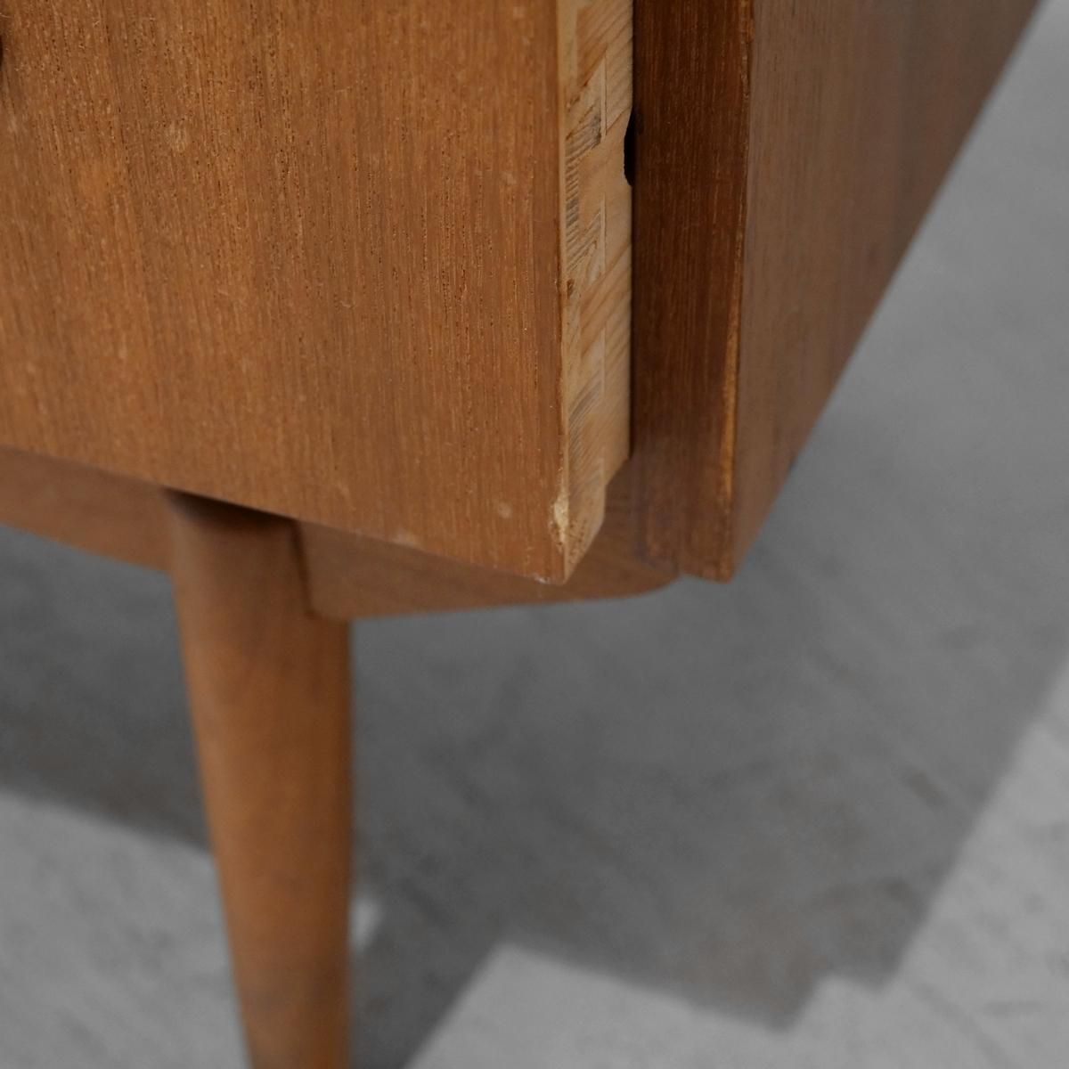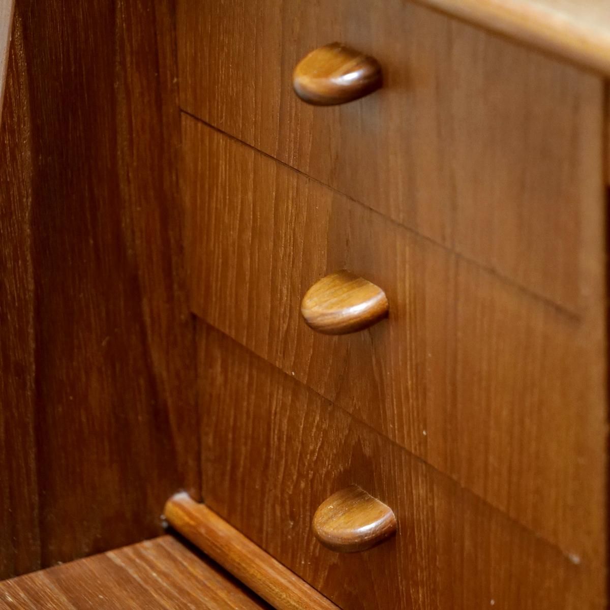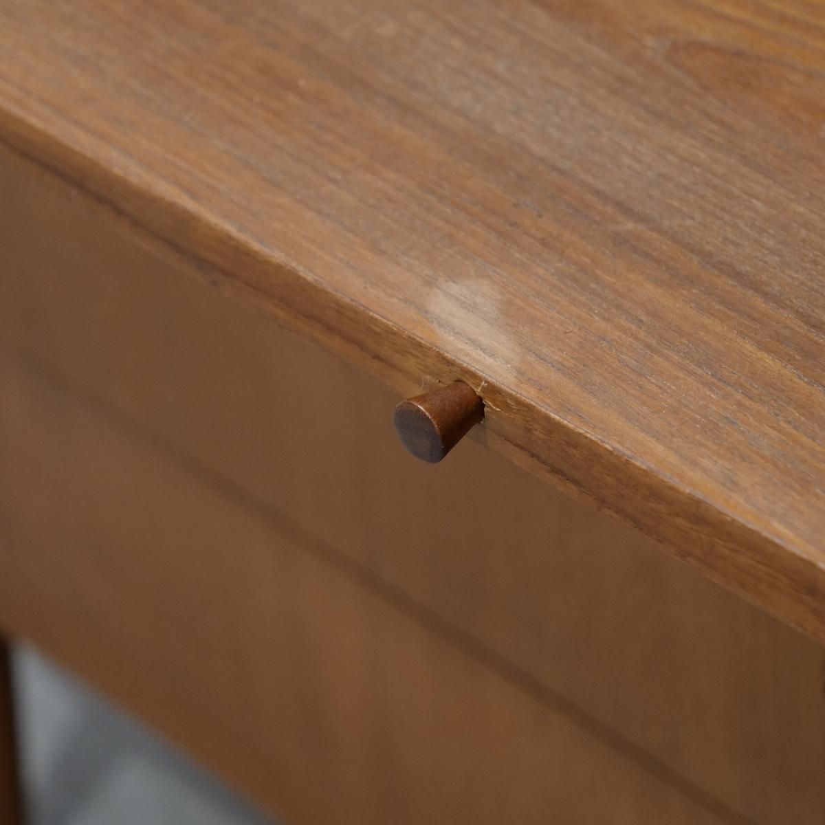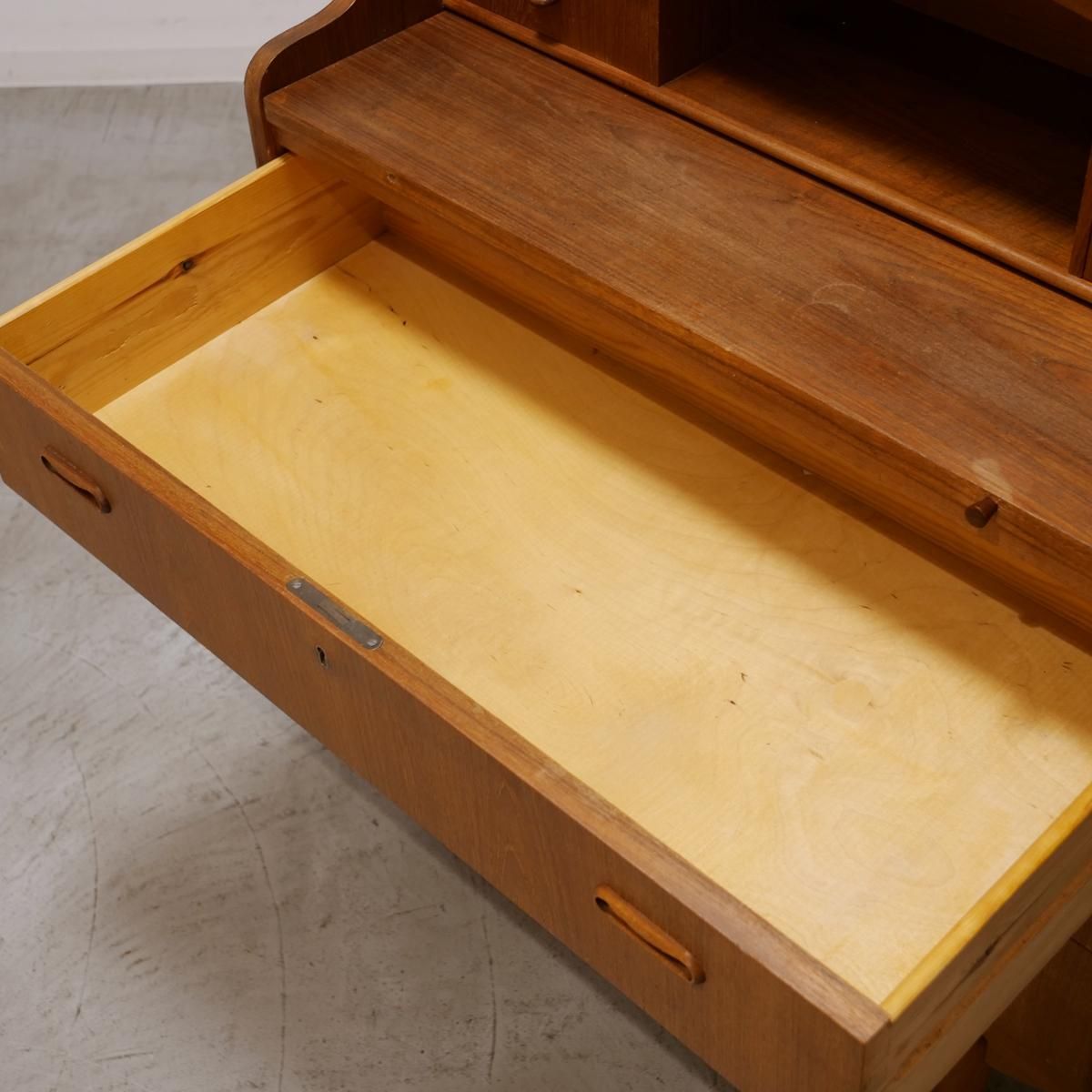 チーク材の飴色の木肌が、50年以上の時間を物語っている。この温もりある表情が、どんな部屋にも馴染み、空間にやわらかな風景をつくりだします。当店から、あなたのもとへ。この家具が、あなたの暮らしにどんな時間をもたらすのか。それは、これから始まる物語です。天板をスライドさせる音、引き出しを開ける手の感触、曲線に触れる指先の感覚。そんな小さな感覚が、毎日を豊かにしていく。