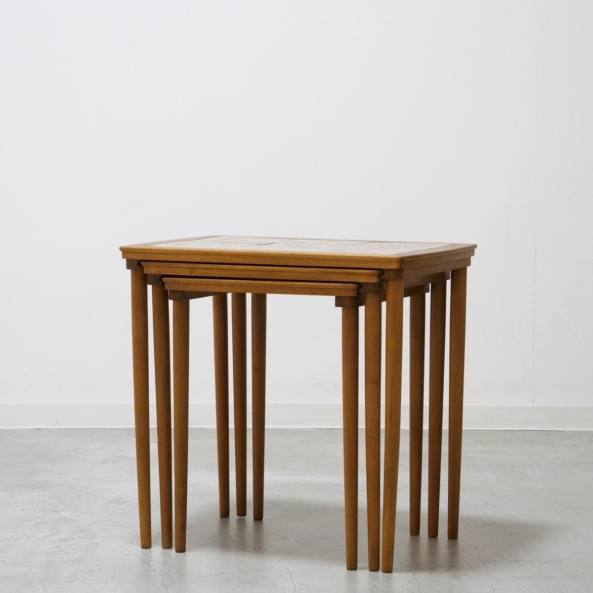 デンマークから届いたのは、温かみのある陶磁器タイルを天板に敷き詰めた、美しいネストテーブル。