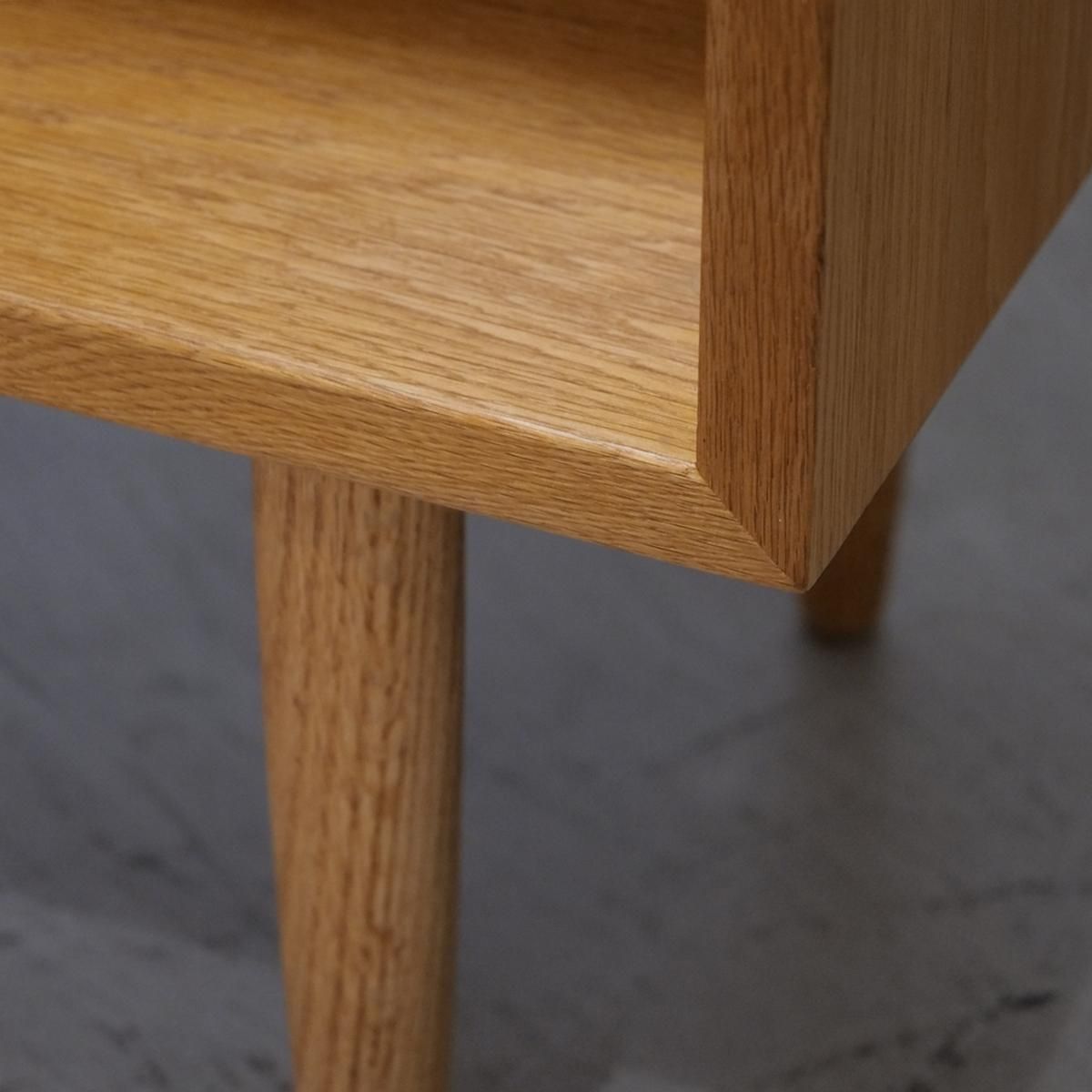 本来は台座、あるいは壁面ユニットとして設計されたこの個体に、当店にて新たにオーク材の脚をセットしたもの。オークの重厚なボリュームを軽やかに持ち上げることで、現代の住空間に馴染む「抜け感」と、掃除のしやすい実用性を付加しています。