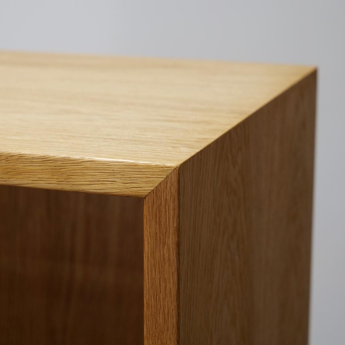 主材には、力強く明るい木目の「オーク材」を使用し、華美な装飾を否定し、収納という機能そのものを美へと昇華させた佇まいは、モーエンセンの実直な人柄そのものを映し出しているよう。