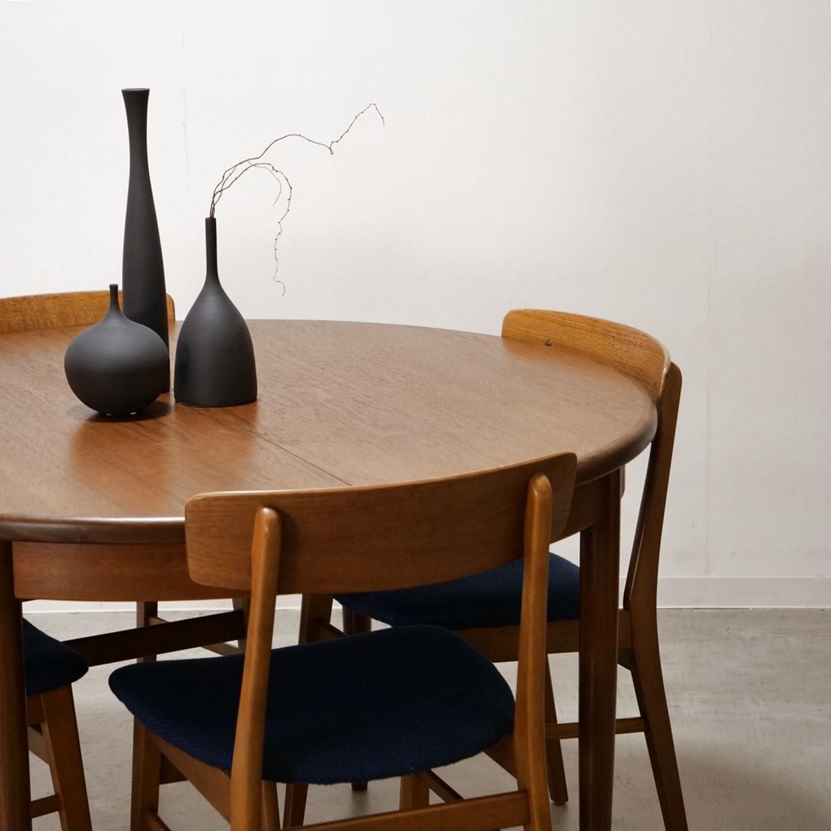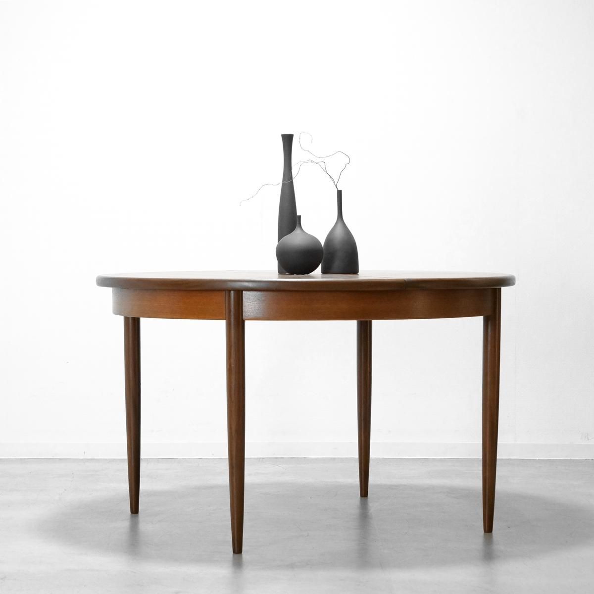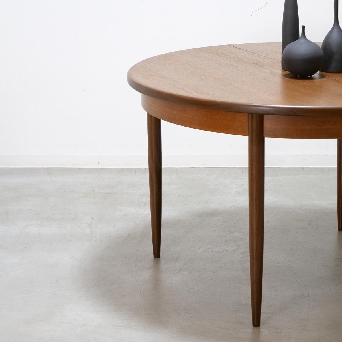 四角いテーブルが支配する空間に、円を投じる。それだけで、部屋の空気は流動的になり、動線は滑らかに整えられます。英国『E-gomme』社、G-PLAN を代表する「Fresco(フレスコ)」シリーズのラウンドエクステンションテーブル。