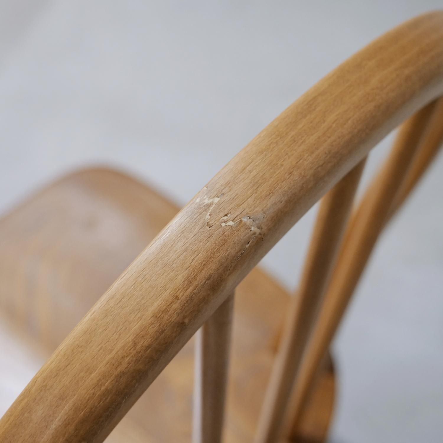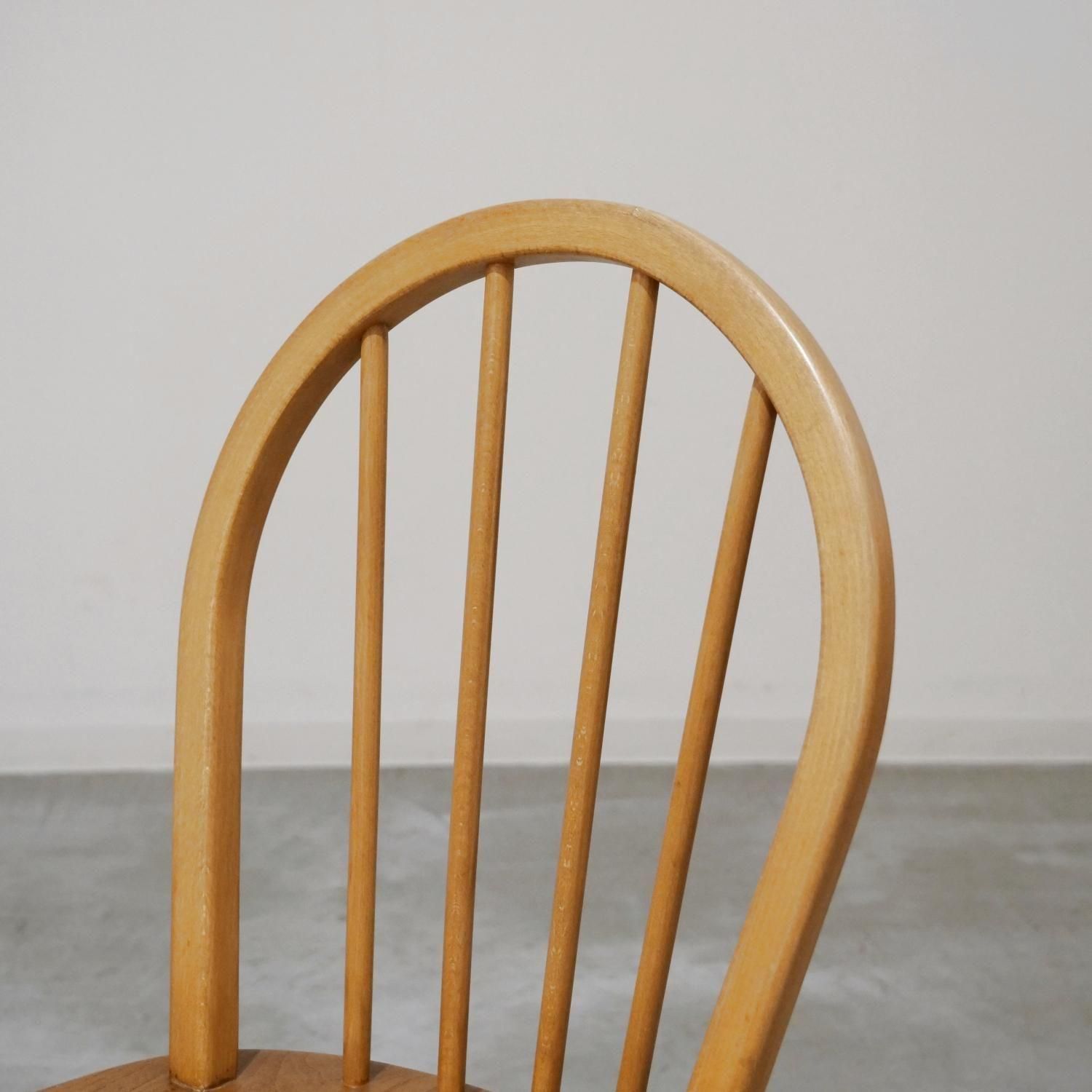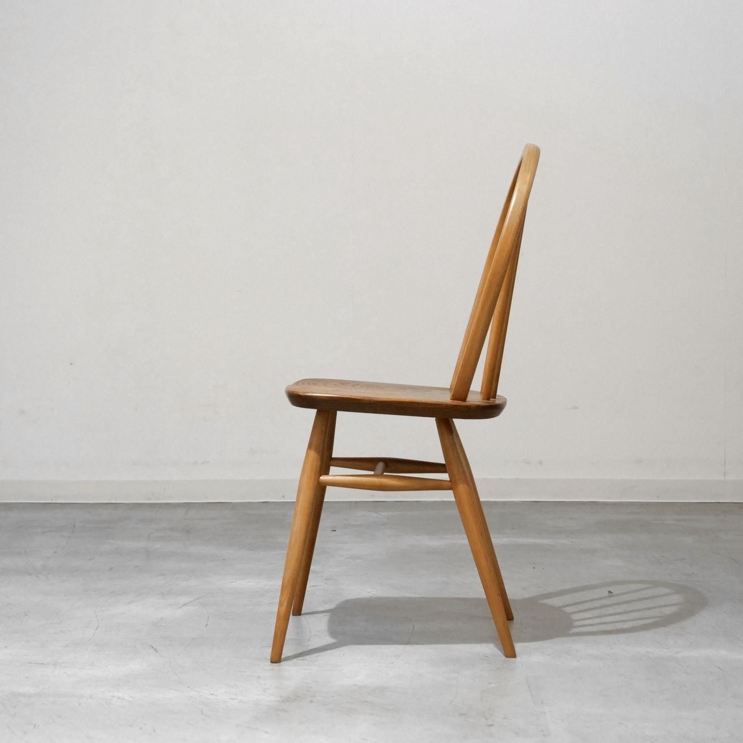 英国『ercol(アーコール)』 社のアイコン的存在でもあるこの椅子は、背もたれのスポーク(棒)が4本と少なく、とても軽やか。女性でも片手でひょいと持ち運べるその使い勝手の良さから、本国では親しみを込めて「キッチンチェア」と呼ばれています。