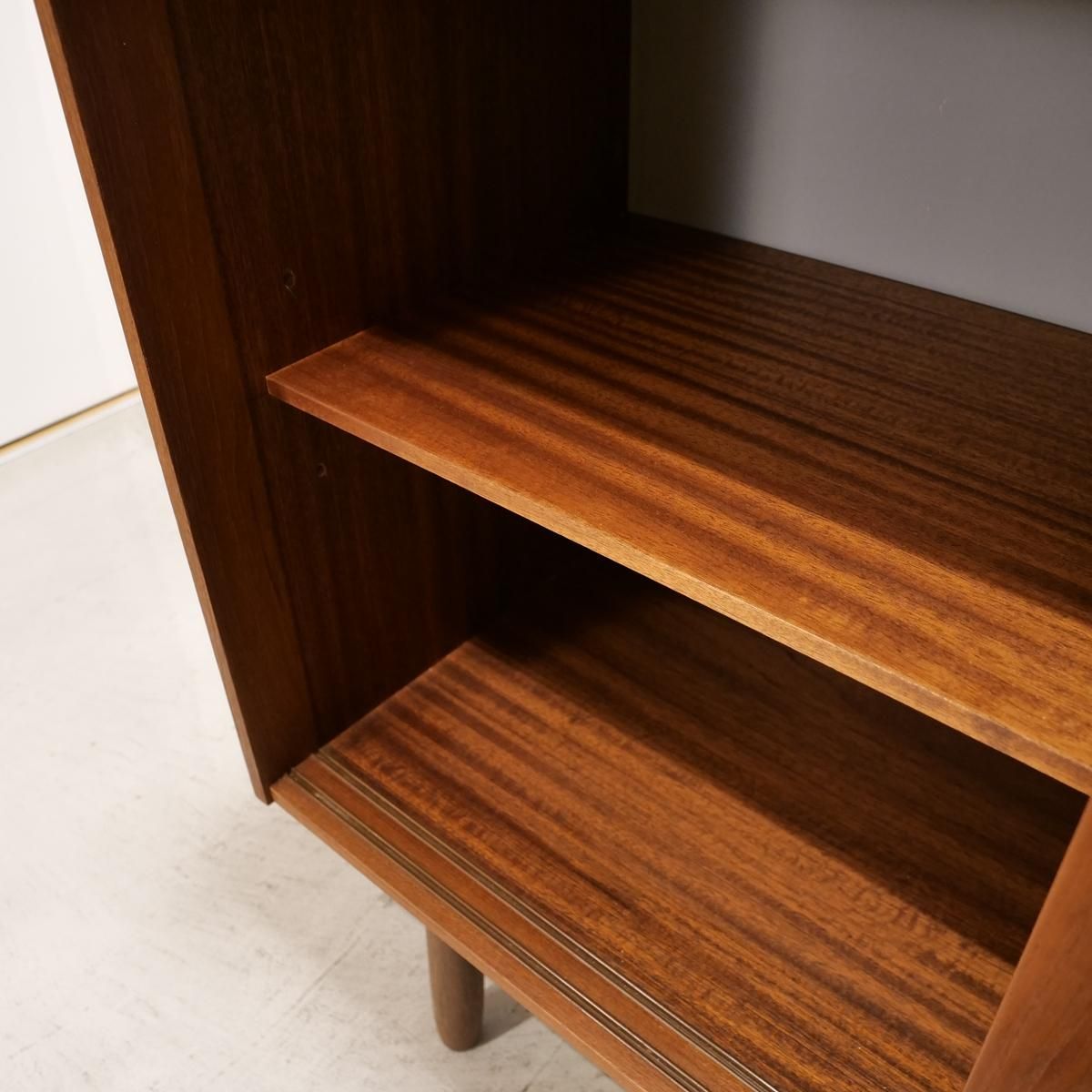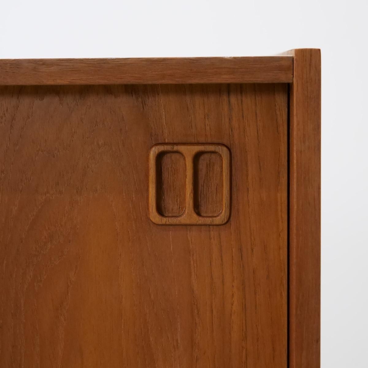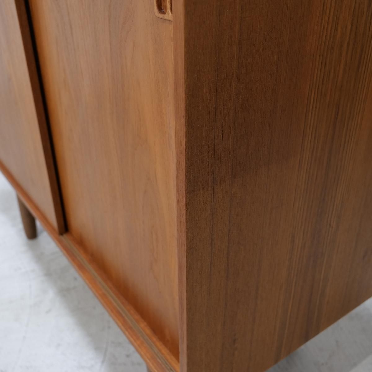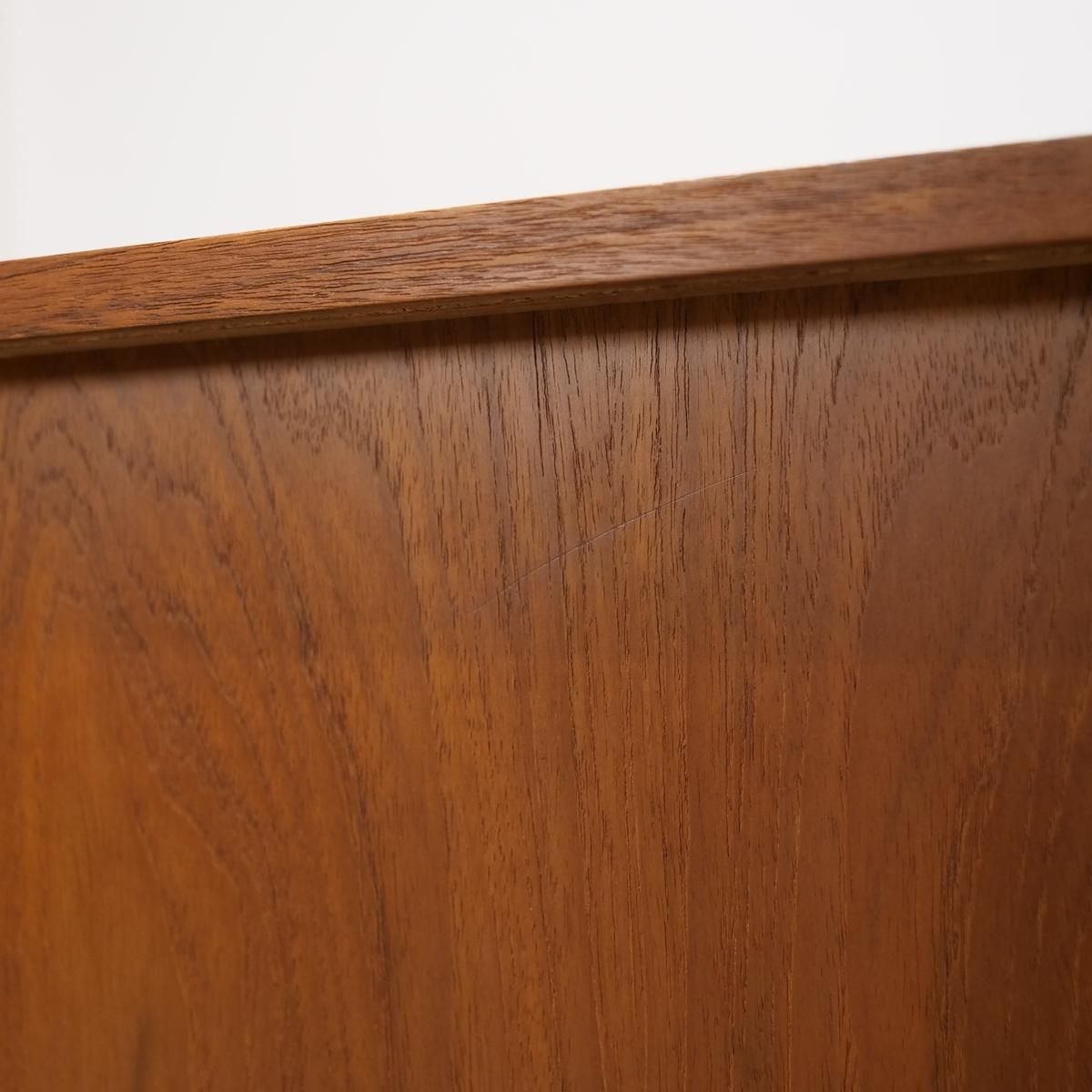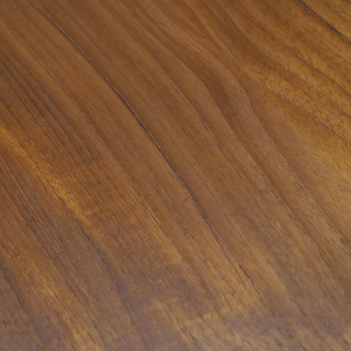 部屋の片隅に、静かに佇む大きな木の箱。 デンマークから届いたのは、深みのある「チーク材」の本体を、シックな「ウォールナット材」の脚が支える、美しいツートーンのキャビネット。